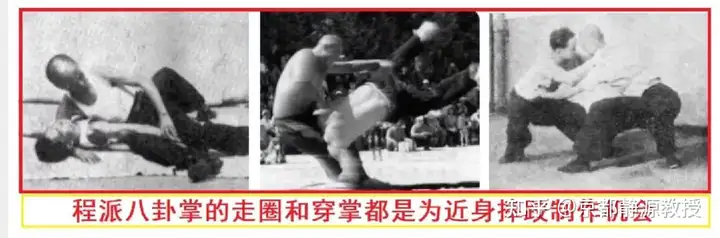 这段记载核心是想表明:程廷华的八卦掌加摔跤的组合不适合孙禄堂!从此,孙禄堂开始了对八卦掌的改造,最后更名为“八卦拳”,即彻底去除了摔跤技术。而如今的八卦掌传人,比如那个北京武林的已故程派八卦掌传人孙志君,我四十多年前就认识他。他的八卦掌根本没有任何摔跤技术,彻底是掌法的走动,还美其名为“游身八卦连环掌”,可以说除了花架子、好看之外,没有任何实战效果。因为程廷华的八卦掌是董海川的八卦掌加程廷华自己的摔跤技术组合而成的。失去了摔跤技术这个特点,一味地追求绕圈和上下穿掌,已经彻底远离了程派八卦的本意!
