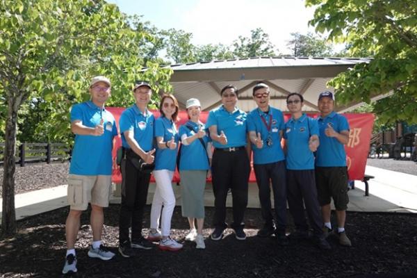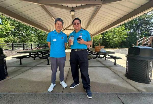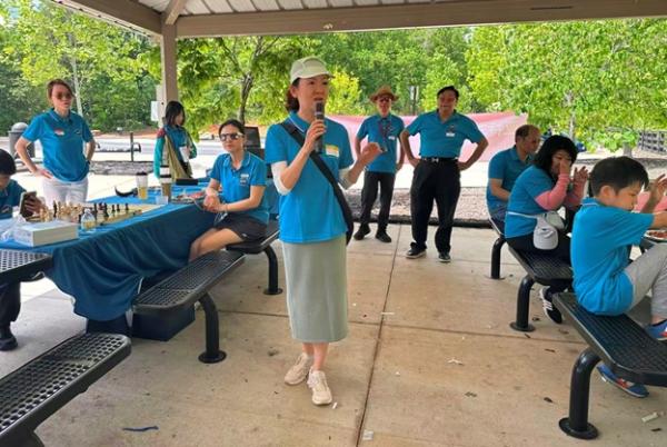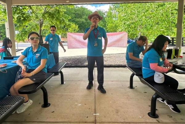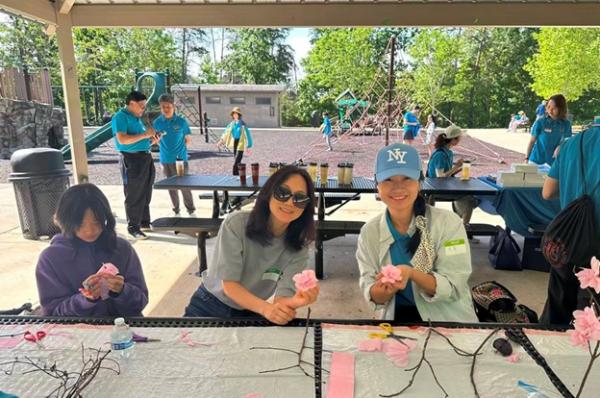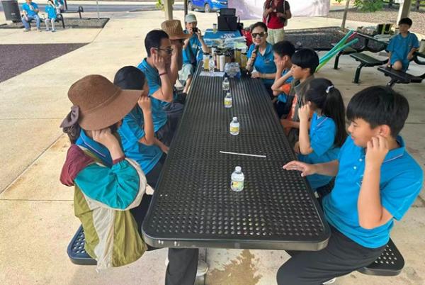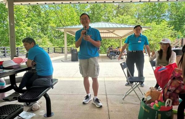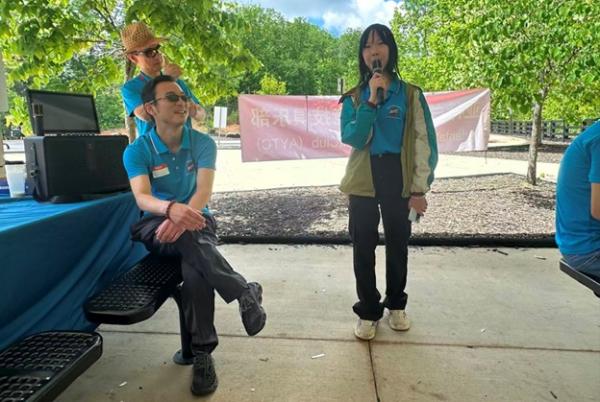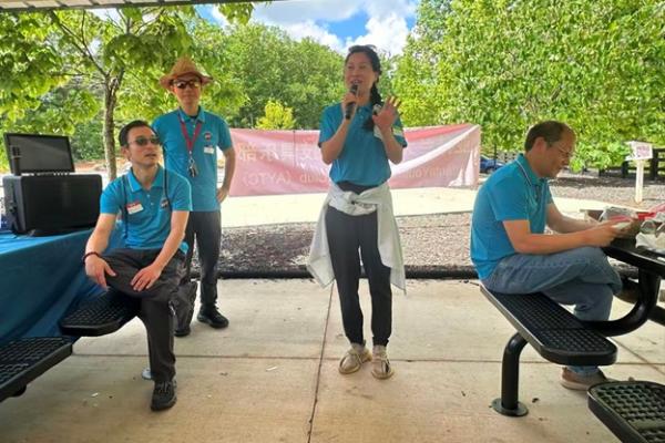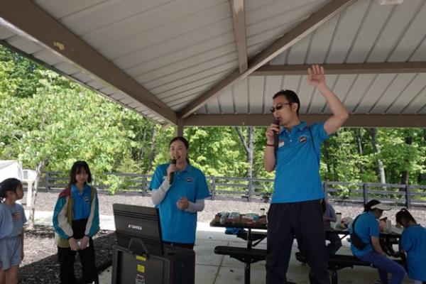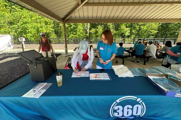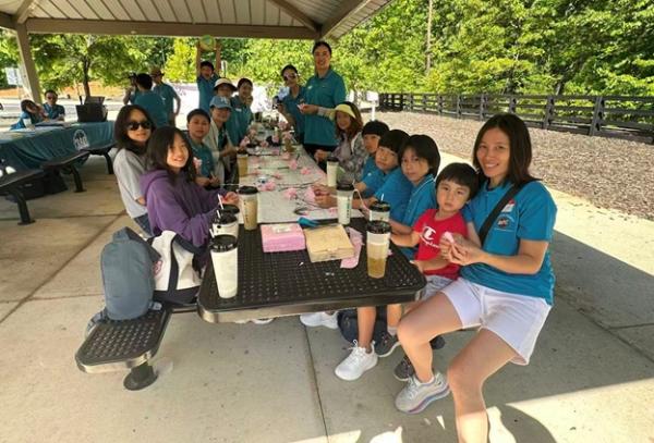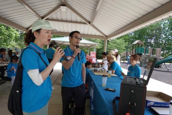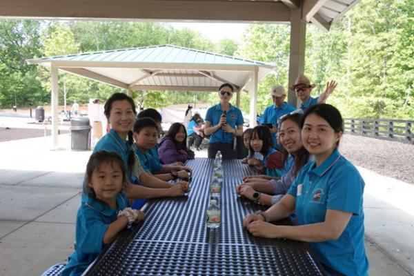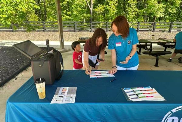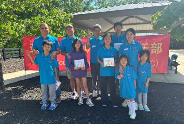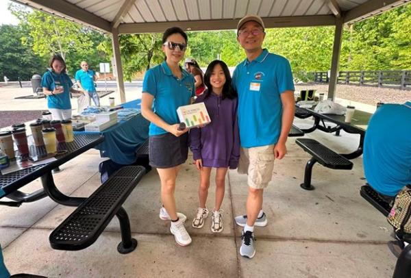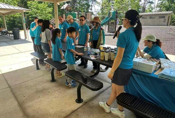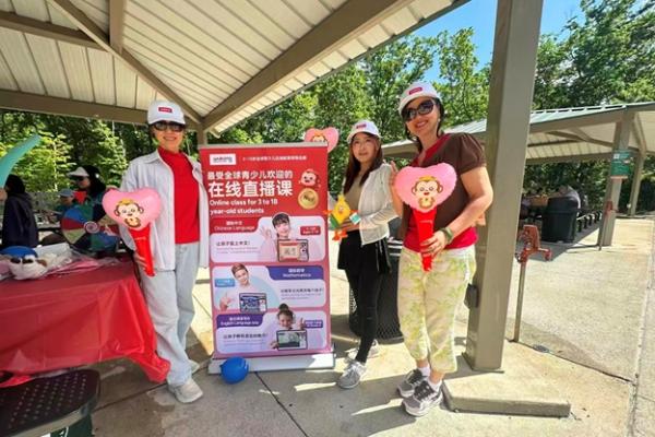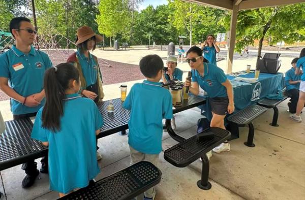 上午 9:30,俱乐部干部们提前抵达停车场大棚,挂横幅、摆奶茶、布置现场,迎接小朋友和家长们的到来。10 点前后,家庭陆续签到、贴名牌、领 T 恤,现场一下子热闹起来,大家喜笑颜开。