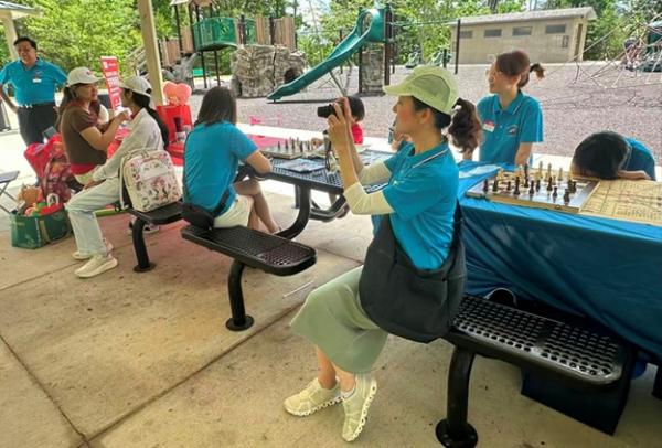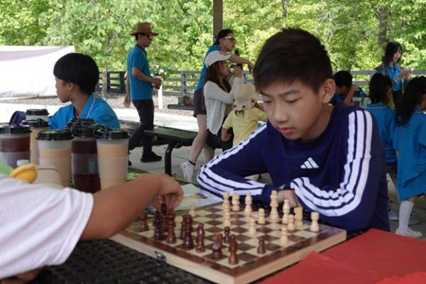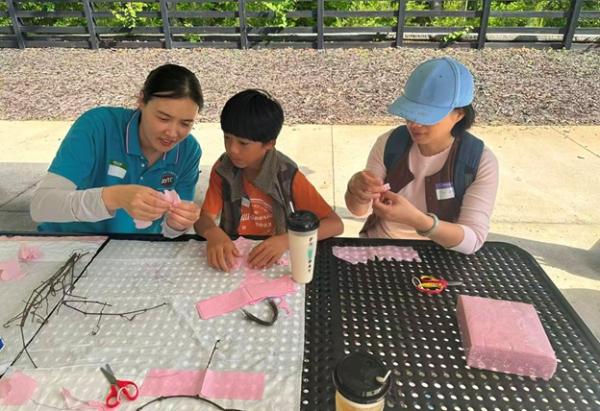 小朋友们最爱的扎花艺术率先开场。孩子们和妈妈们在老师带领下捡树枝、剪粉纸,把一片片纸花扎成春天的模样,既锻炼手巧,也在不知不觉中感受美学。另一边,小朋友们沉浸在棋类游戏中,探索国际象棋、围棋、五子棋的奥秘。