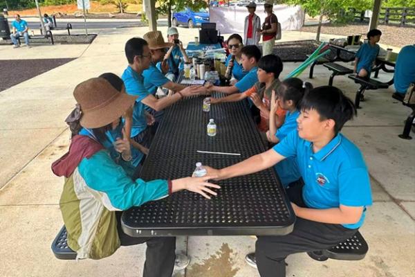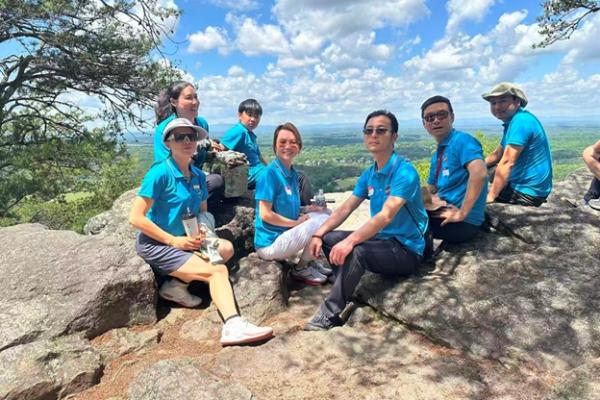 下午 1 点左右,在向导带领下,大家齐聚山脚开始登山。孩子们像小鹿一样蹦跳前行,家长们边走边聊,沿途风光尽收眼底。到达山顶时,天高地阔、云影流动,远眺田纳西与北卡的山脉,令人心旷神怡,一派 “极目楚天舒” 的壮丽。大家纷纷拍照留念,把美好定格。