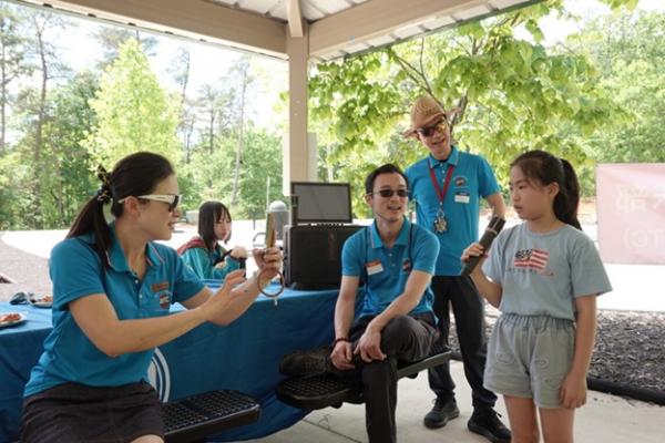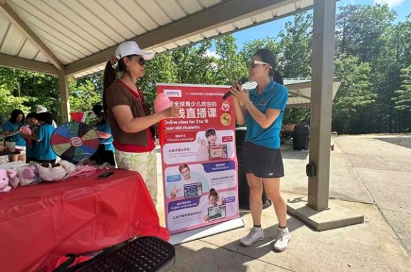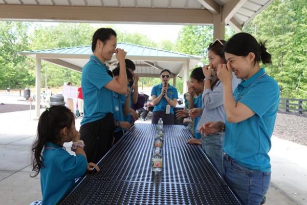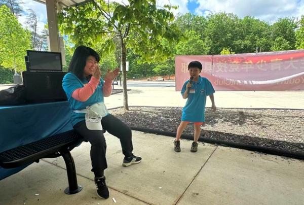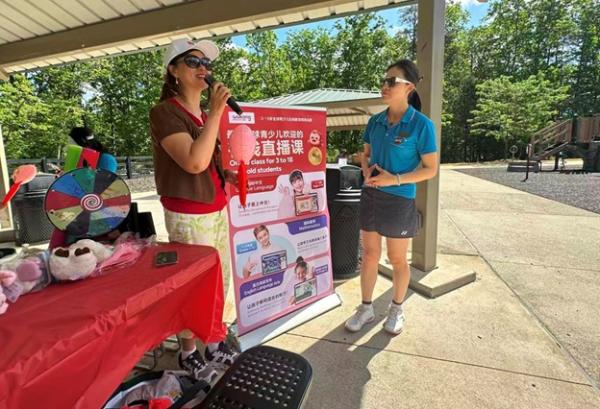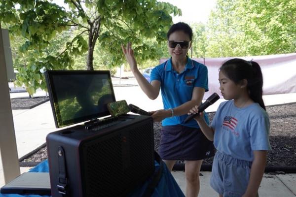 人越来越多,“悟空教育”的赞助商也来到现场助兴,俱乐部还对她们的教学方向进行了简短采访。家长们的 K 歌更是把气氛点燃,歌声在山谷间回荡,格外动听。