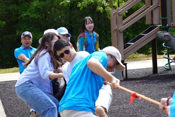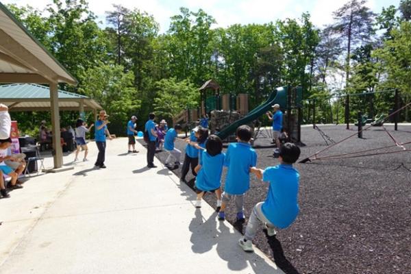 拔河更是气壮山河,小朋友先来一轮,大人们随后混战,把热闹推向高潮。