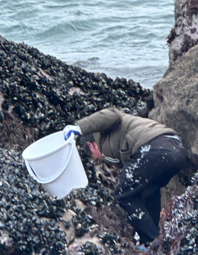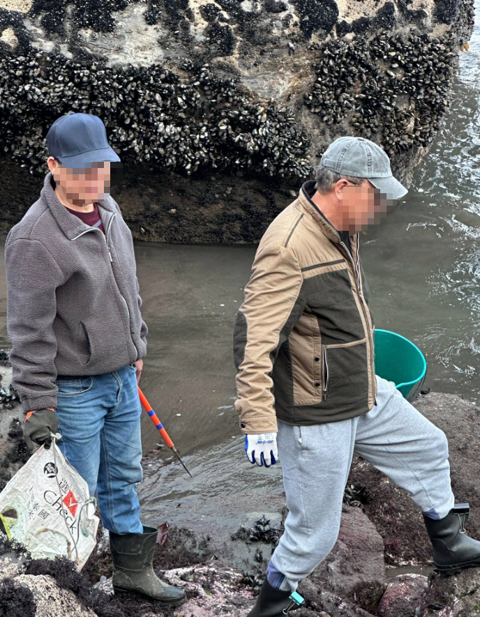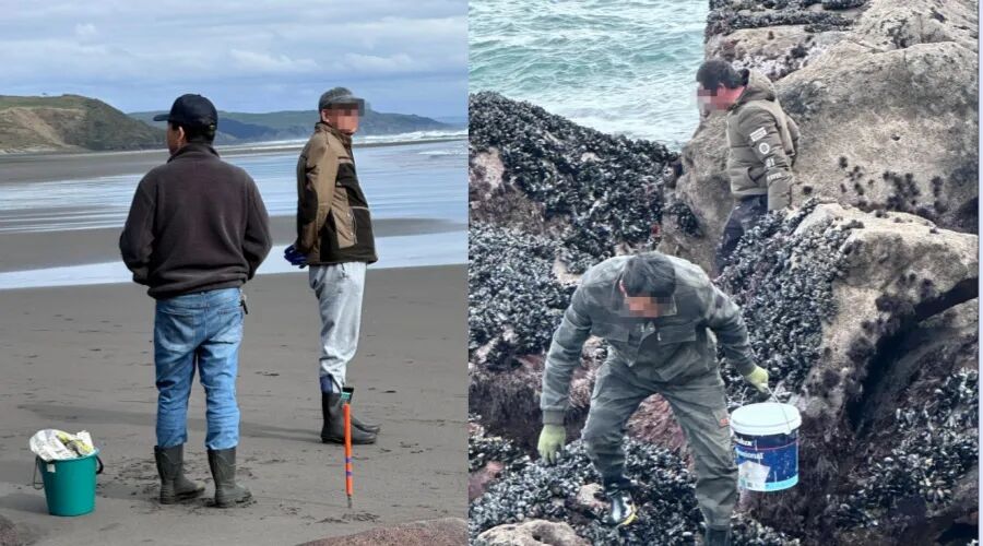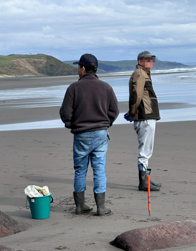 Harris说,她和朋友在Ruapuke海滩散步时,注意到四名男子正在潮间带采集很小的青口贝。