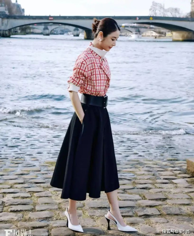 衬衫可融入不同元素,比如花纹、小格子等,身上这款有格子元素作为点缀,丰富了视觉效果。女性到了35+,要想通过穿搭拥有好身材,哪怕是穿裙子,也要时刻记着把腰线露出来。这么一来,时髦精便将目光投向融入高腰设计的半身裙,抬高穿着者腰线后,就能在视觉上优化身材比例。高腰还能在一定程度上遮掩肚子上赘肉、掐出纤细腰肢。