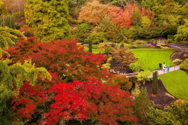 这座温哥华的标志性公园一年四季都景色迷人,但秋天更增添了它的光彩。史丹利公园的步道变成了橙色和红色树叶的隧道,海堤在水面上闪烁的金色光芒中闪闪发光。