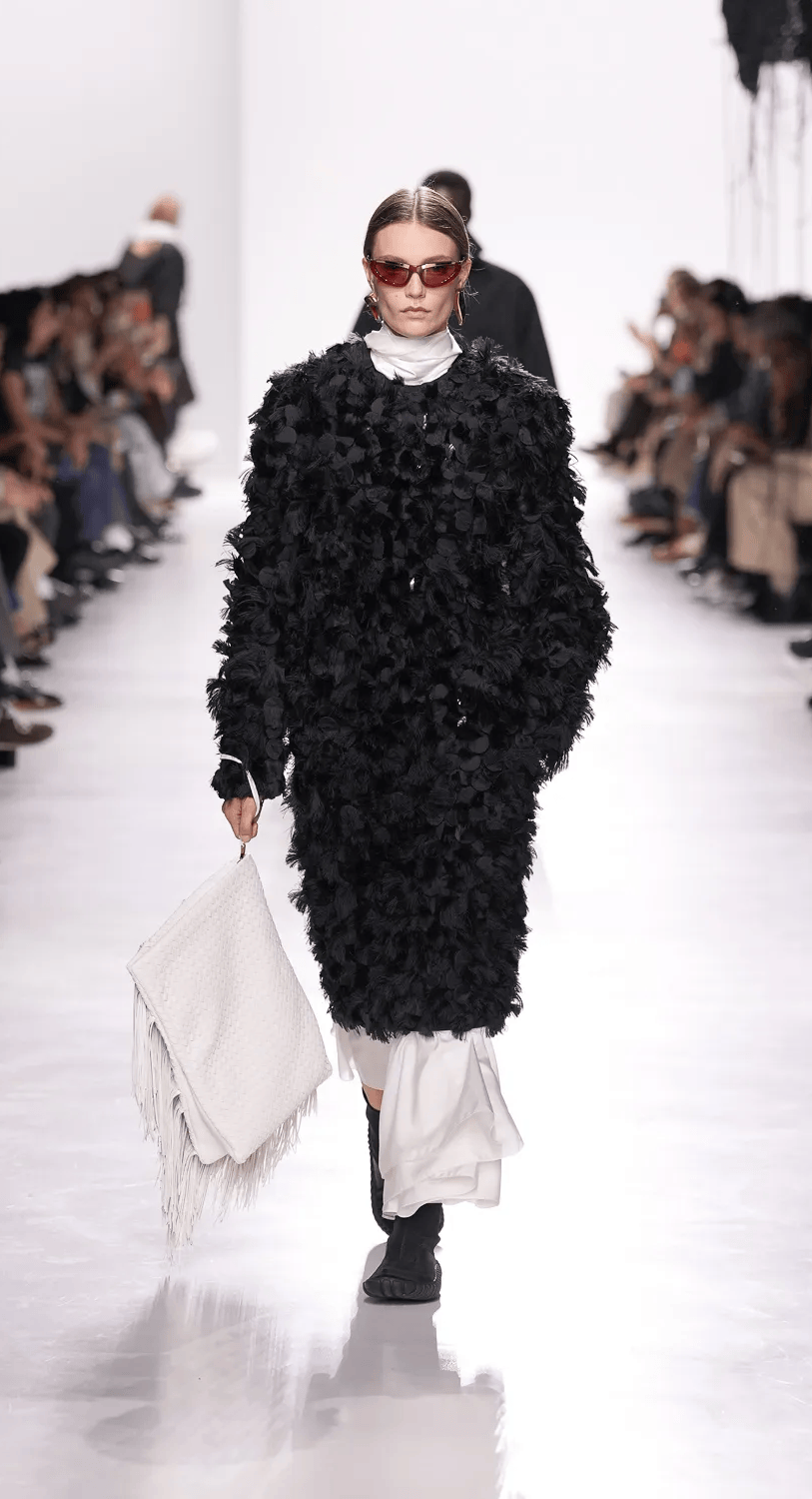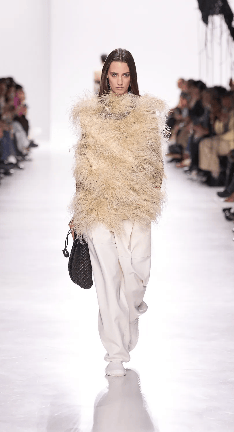 皮草外套、毛绒、流苏等元素的结合,我认为是BV这一季最美的存在。