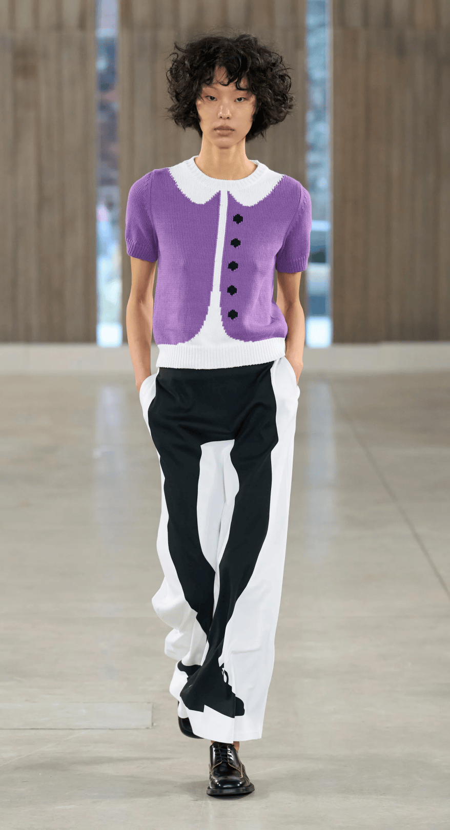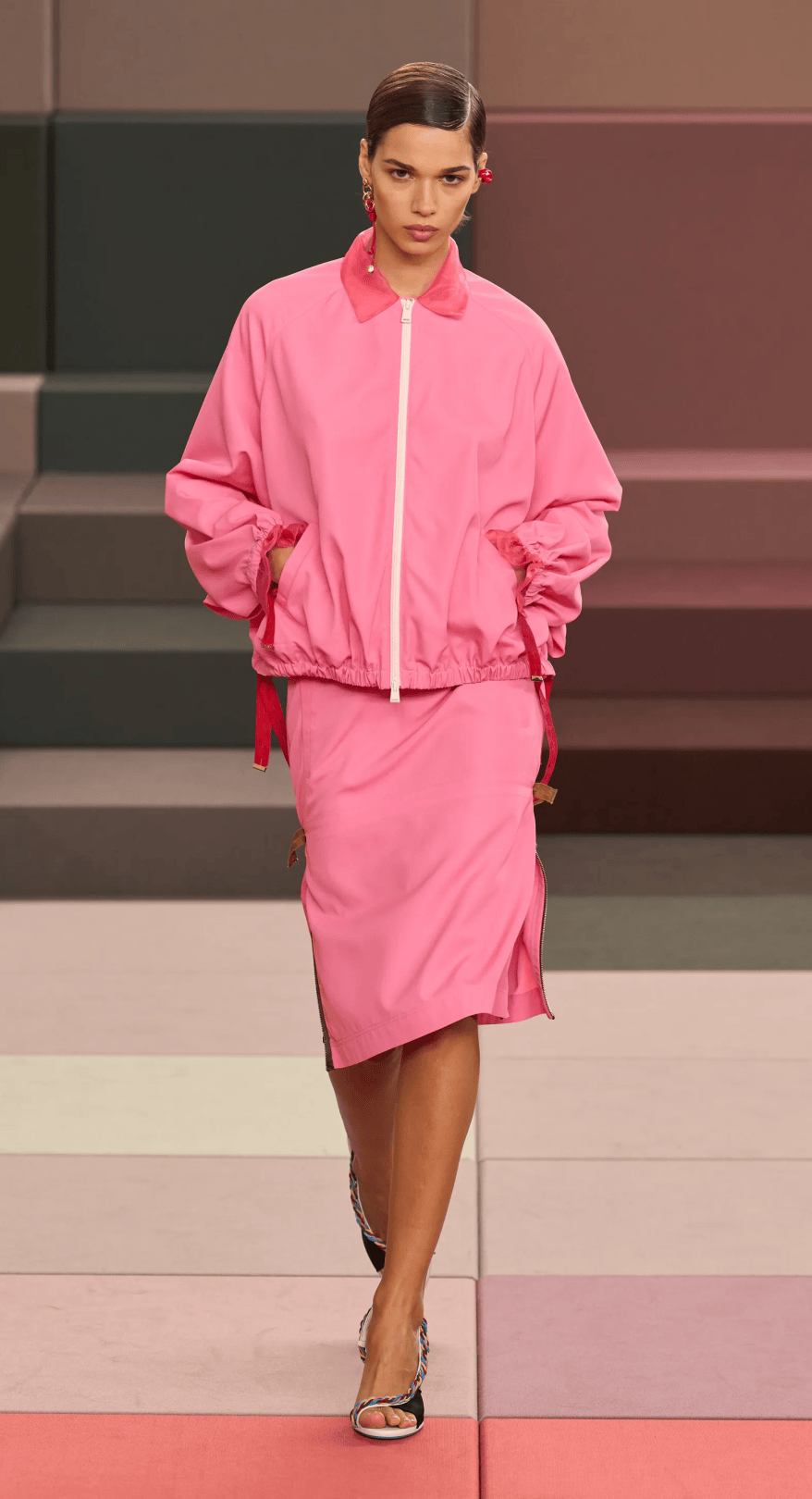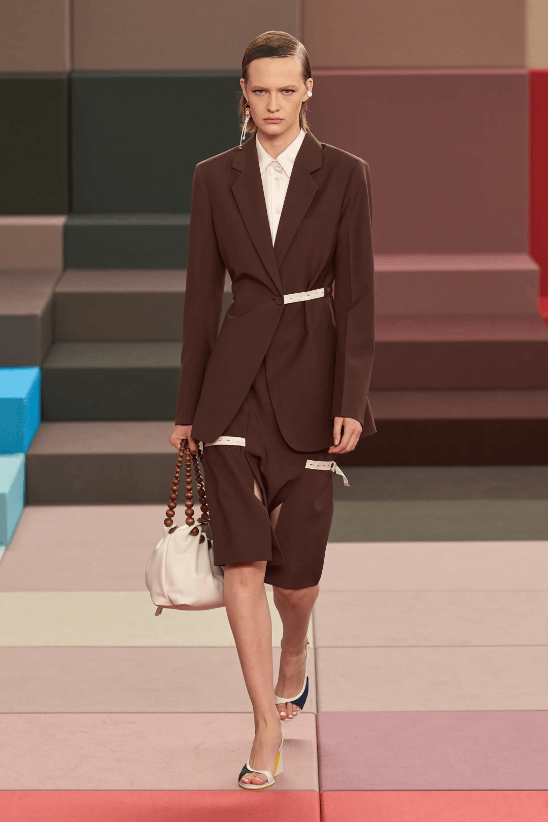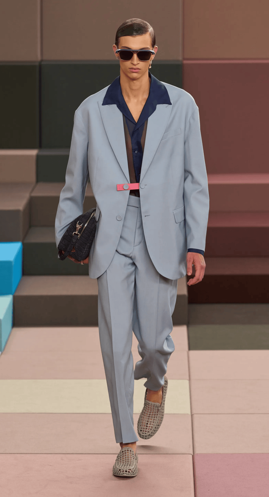 所以在本季服装上,男女装元素互相借鉴,大胆的高饱和色块与撞色直击眼球,为穿搭注入一抹灵动的趣味。