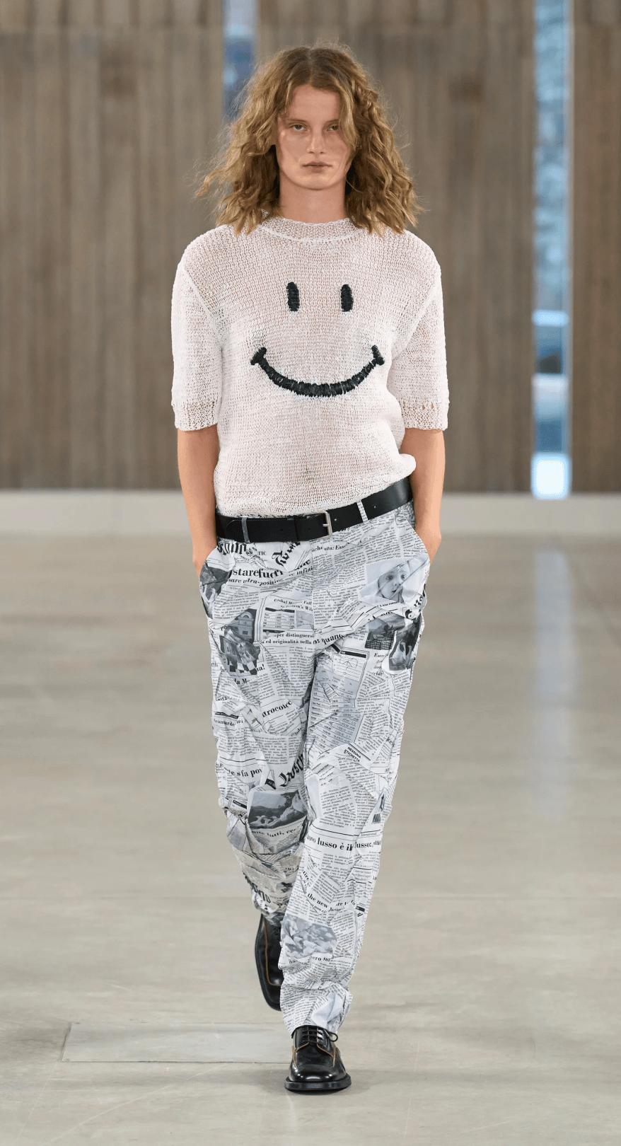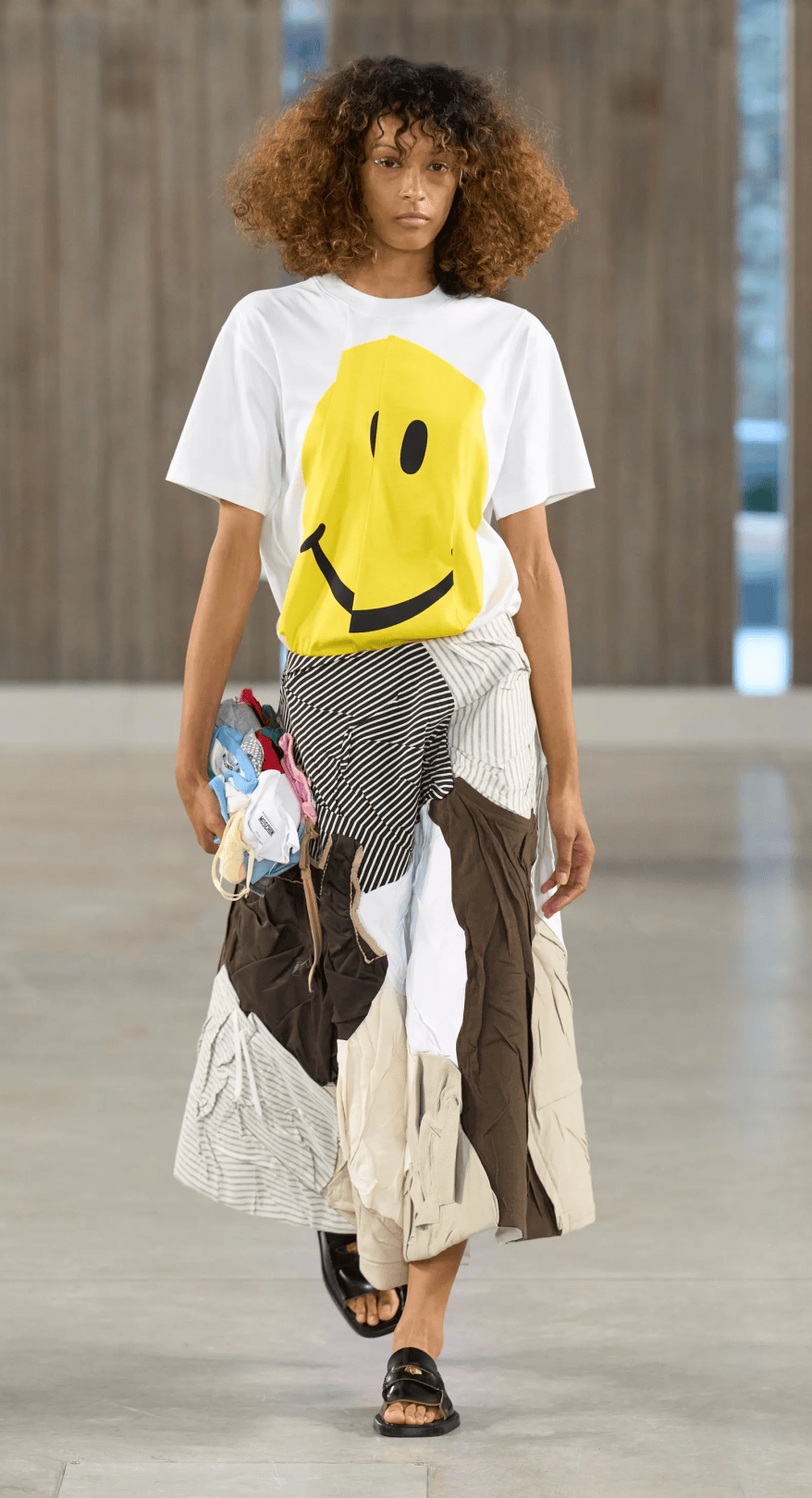 当然,简单却很有辨识度的Smiley表情符号,也出现于T恤、针织上,Moschino 用它来缩小高端时装与大众文化之间的距离。