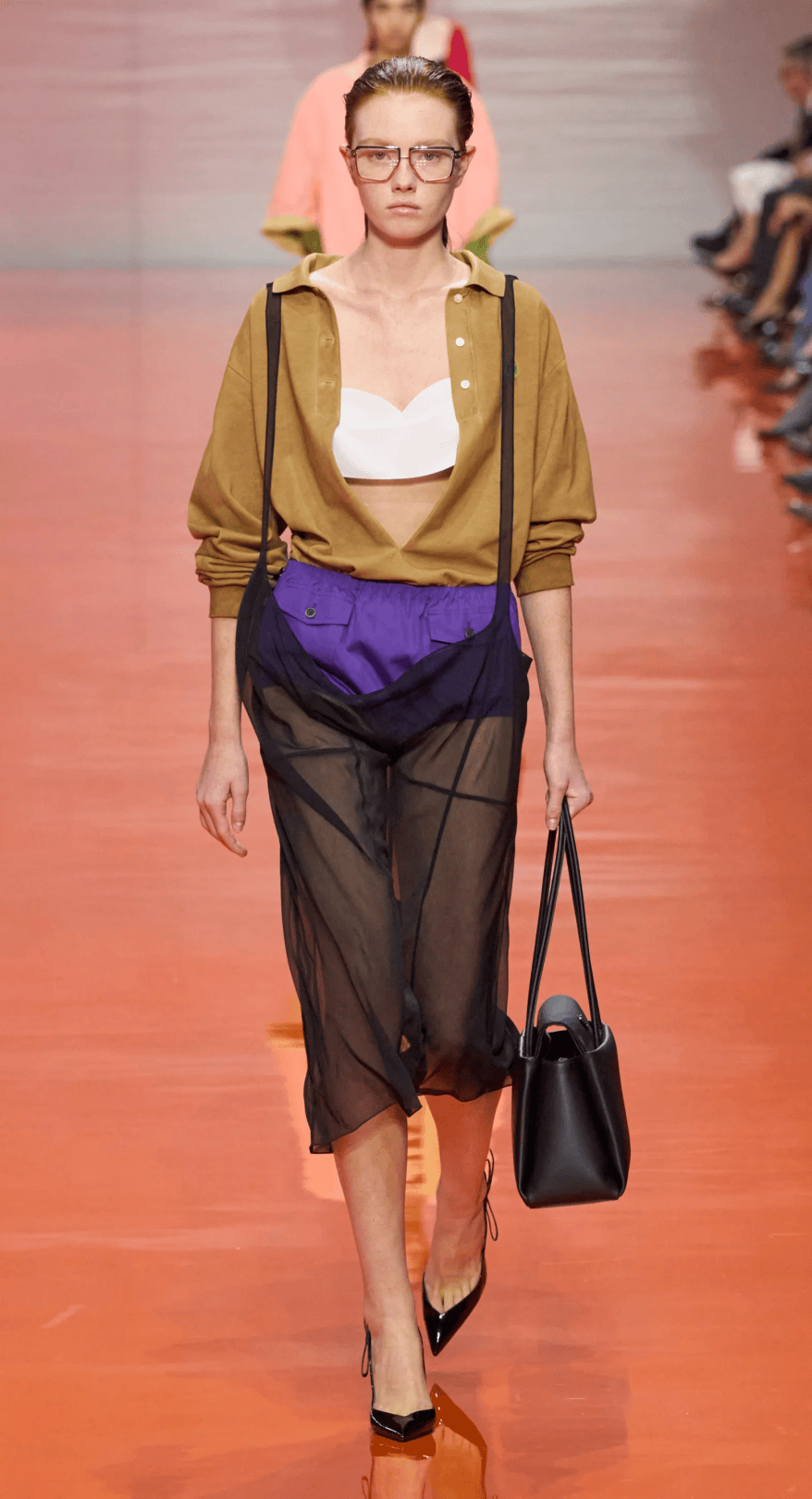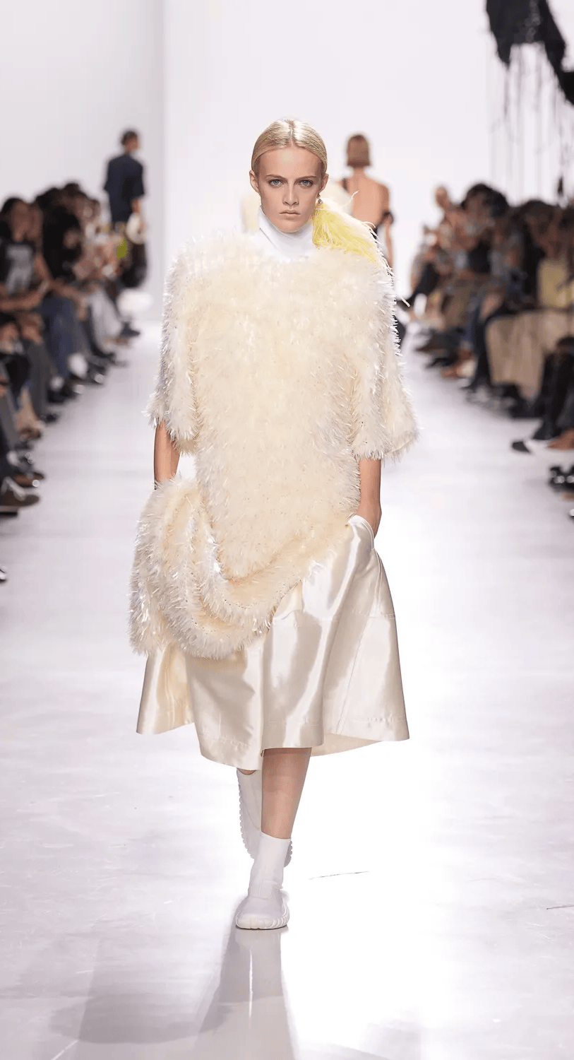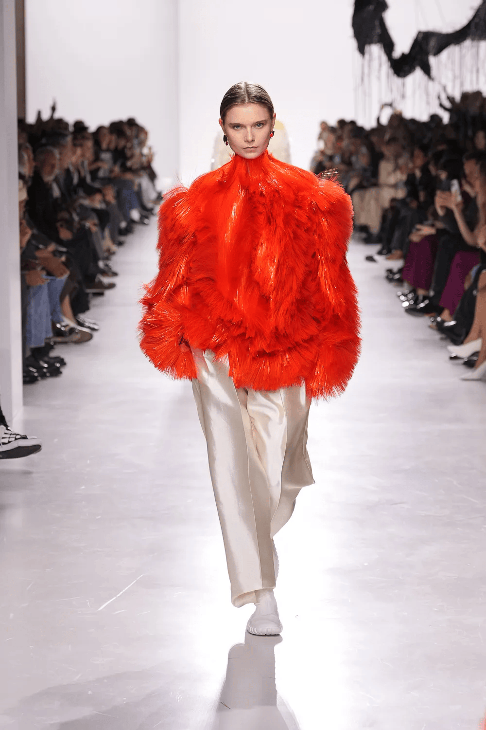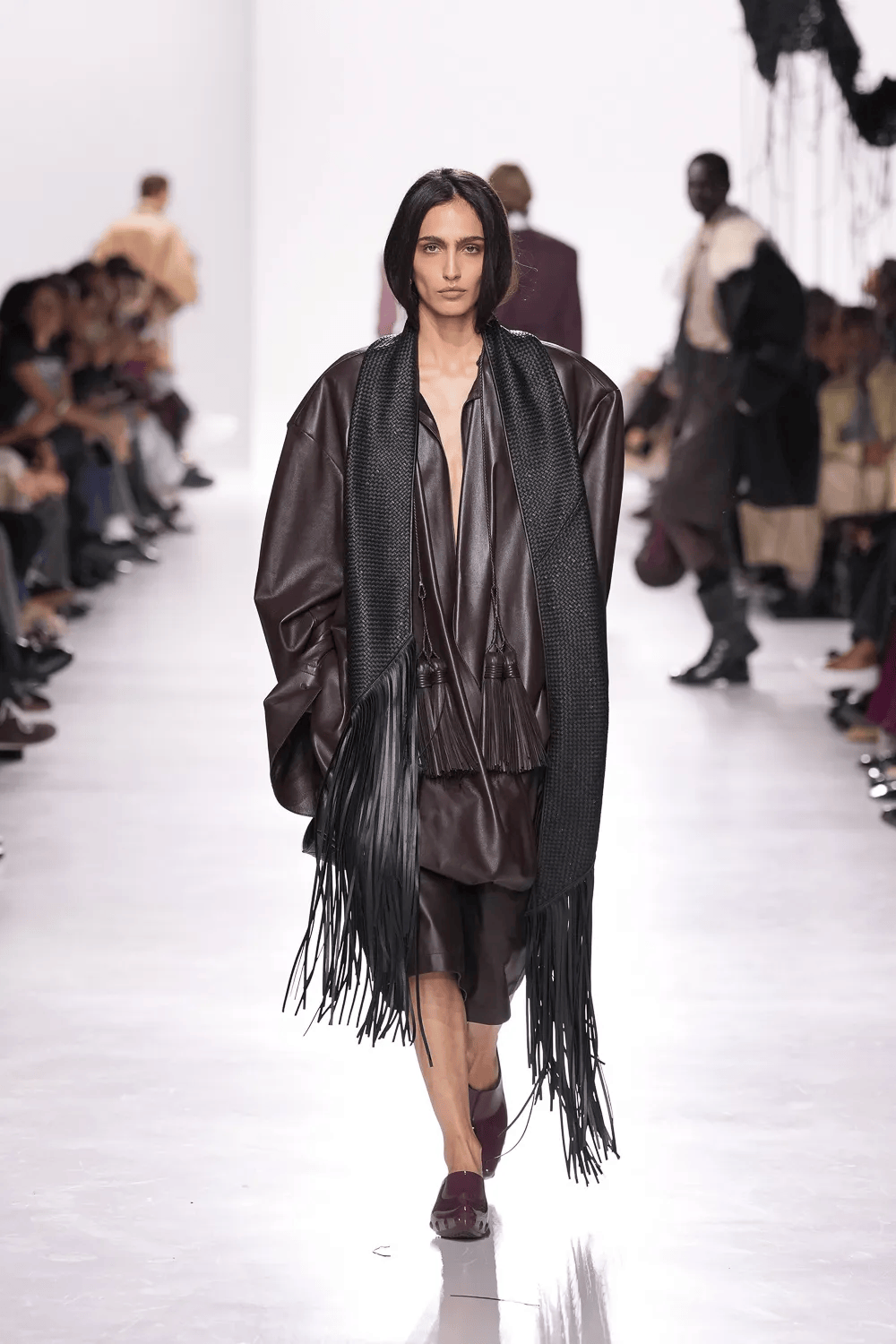 秀场以简约空间为背景,摒弃繁杂装饰,让观众的注意力聚焦于服装本身,Trotter延续了BV低调奢华的基因,将轮廓与色彩玩得高级而丰富。
