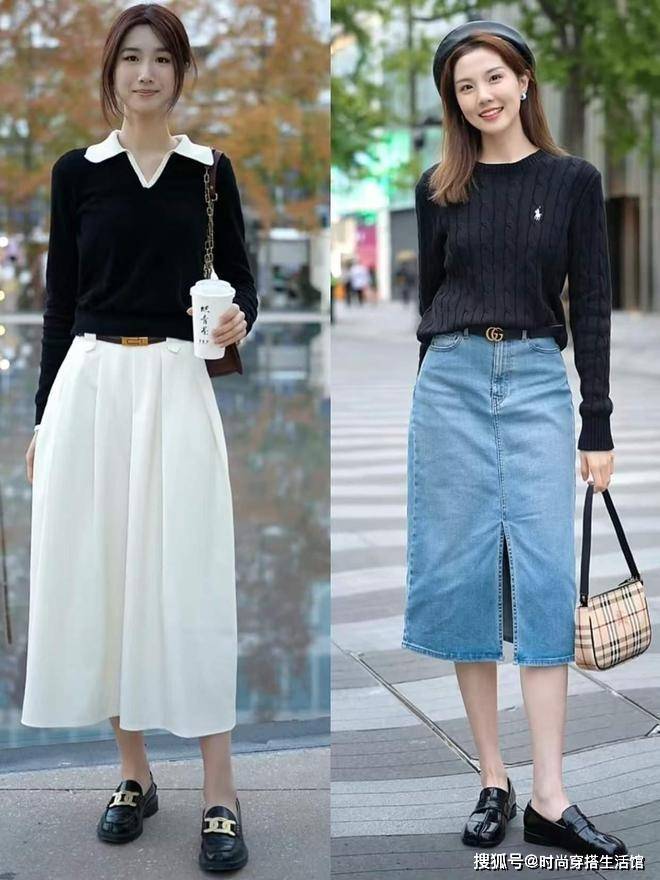 ①同色系下装+鞋子,延伸腿部比例