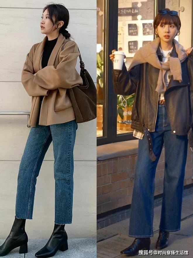 秋天我们穿阔腿裤和短靴的时候要注意塑造出腰线,像是秋冬季节最常见的就是上短下长的搭配,选择根据分段式的穿搭去调节我们的身材比例,或者是选择上衣塞裤腰的方式,脚上搭配一双短靴,能够完美的改善我们的身材比例。