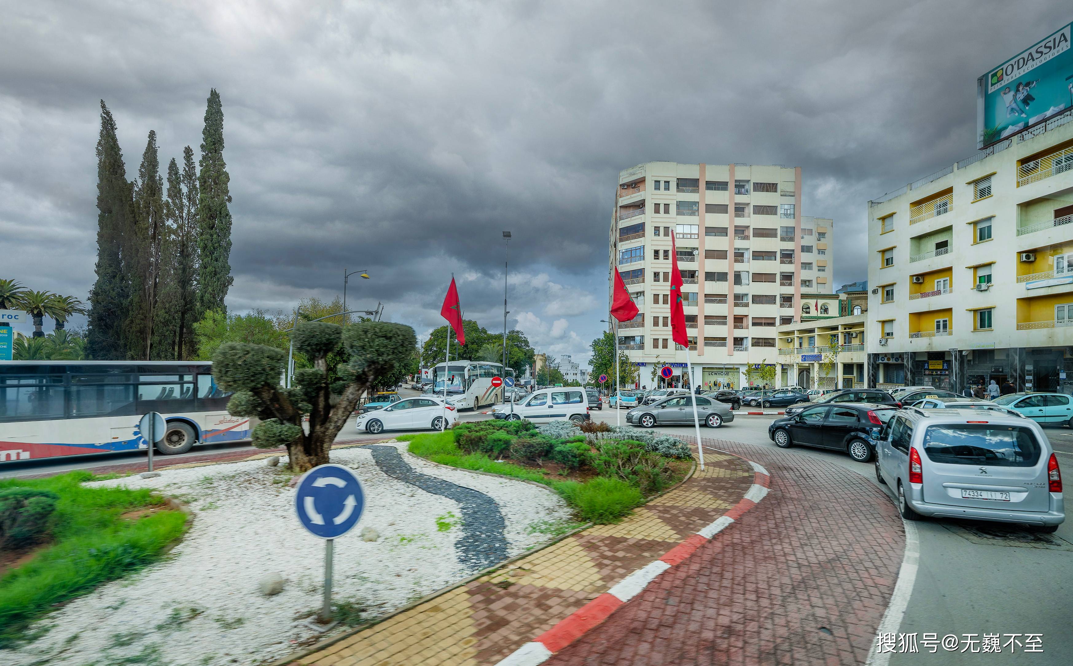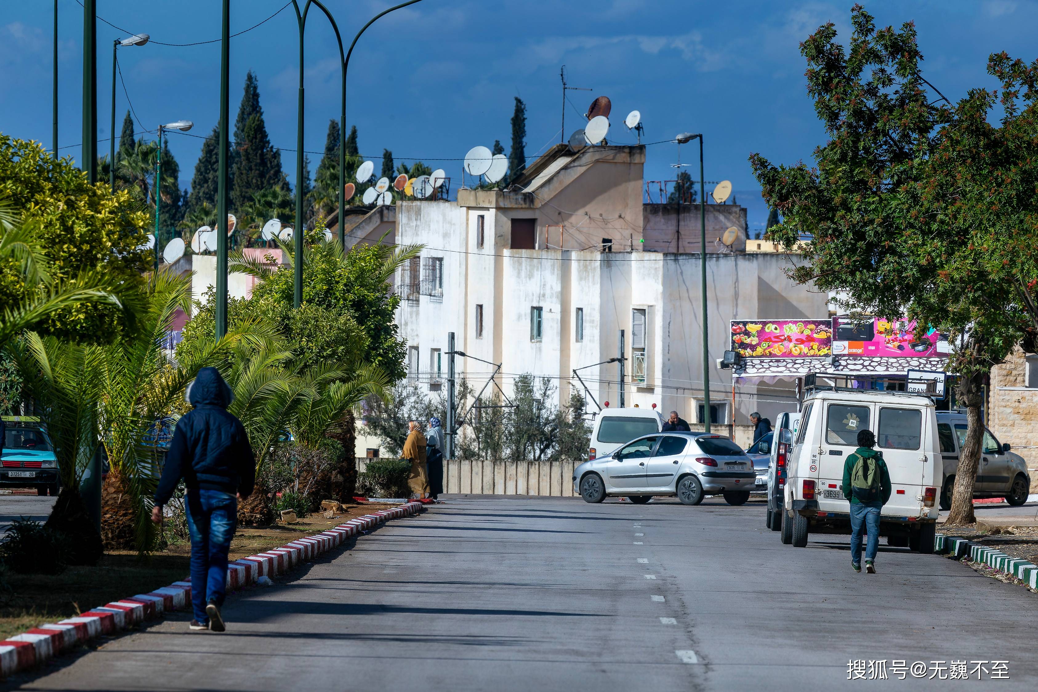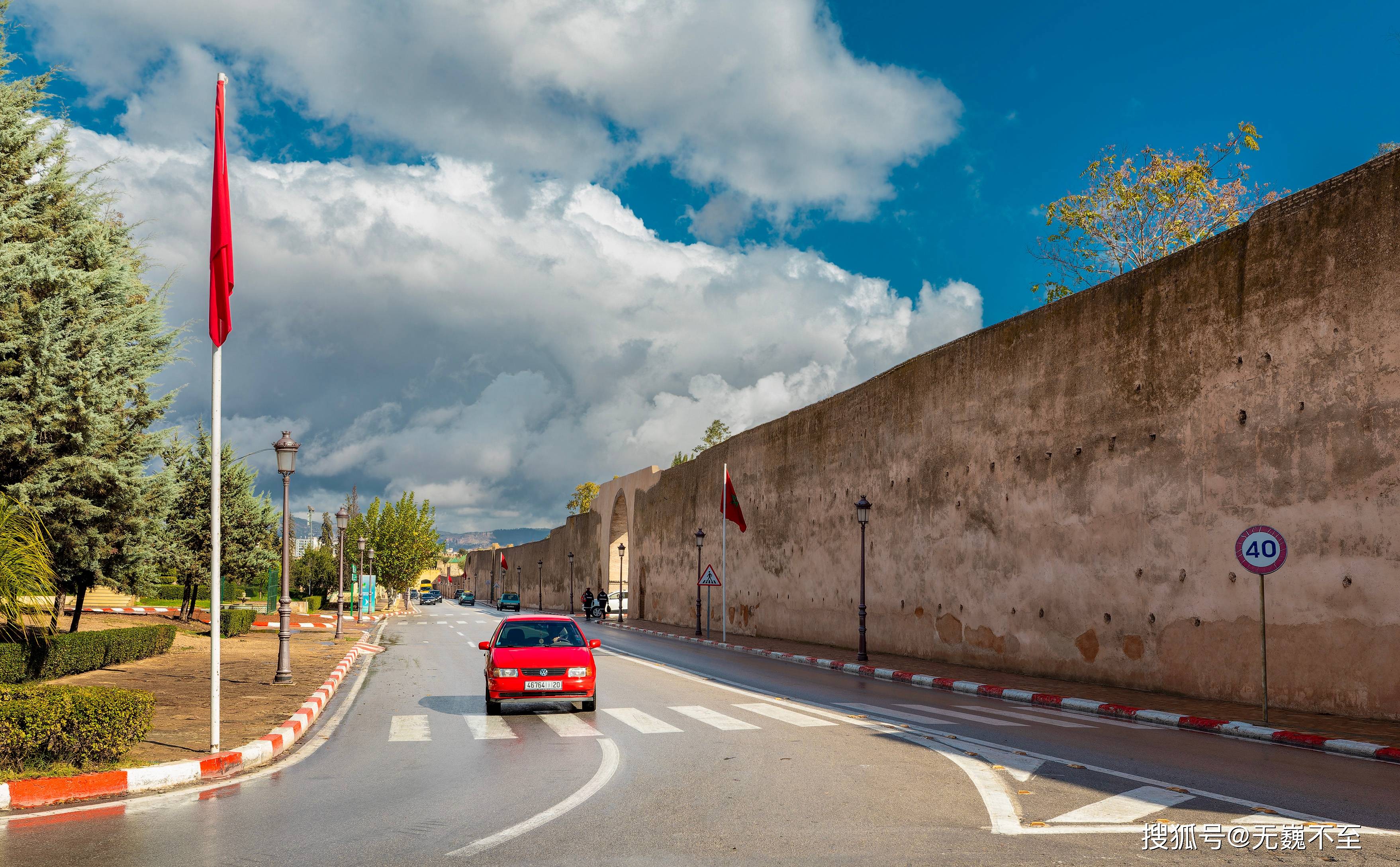 不到两小时,大巴缓缓驶入一座基色为红白蓝黄的城市,浓密的云团和阳光争先恐后地汇聚到城市上空,现代高楼、插满国旗的街道、笔直的棕榈树,一切井然有序,黑色皇城梅克内斯到了。