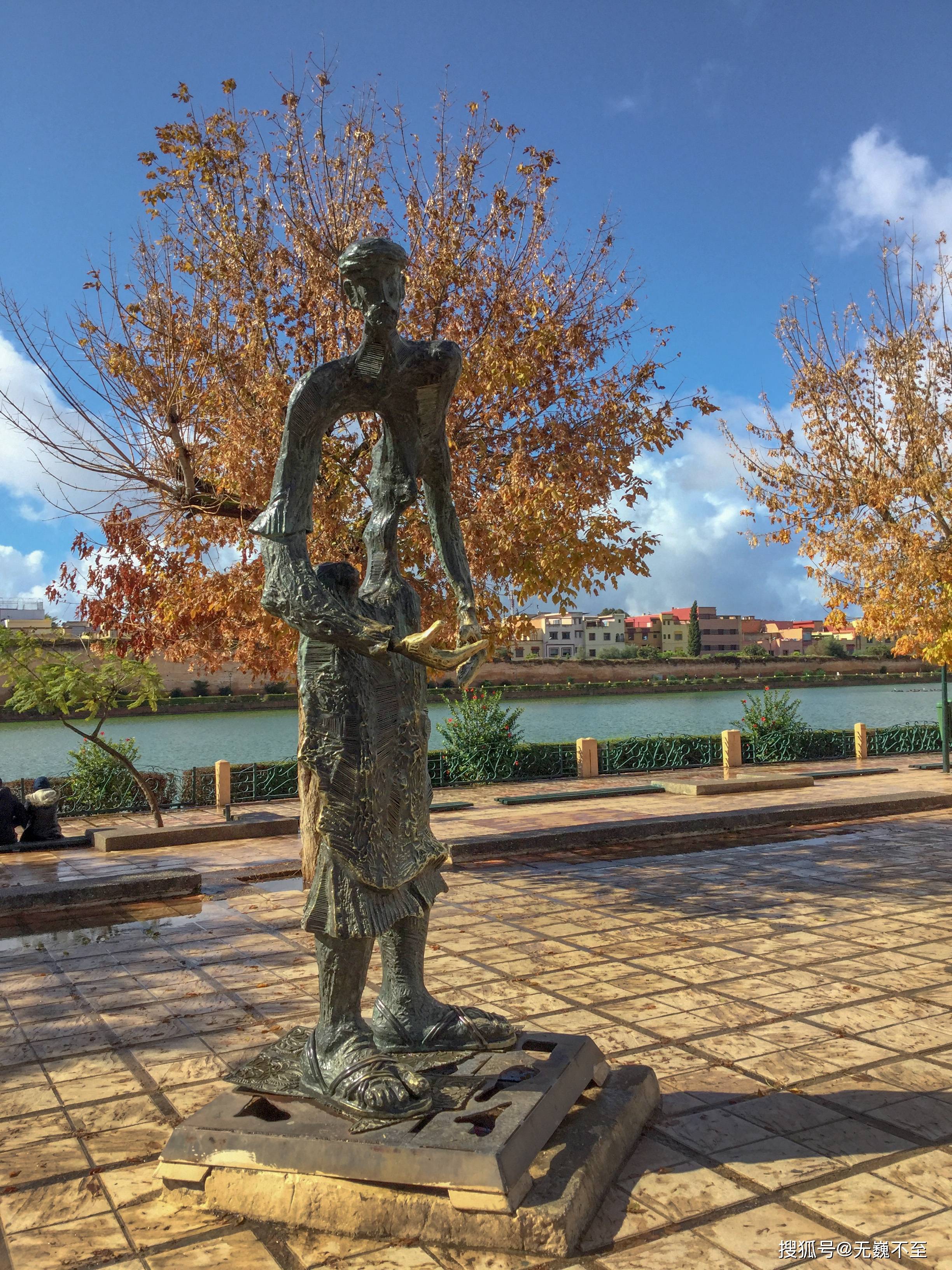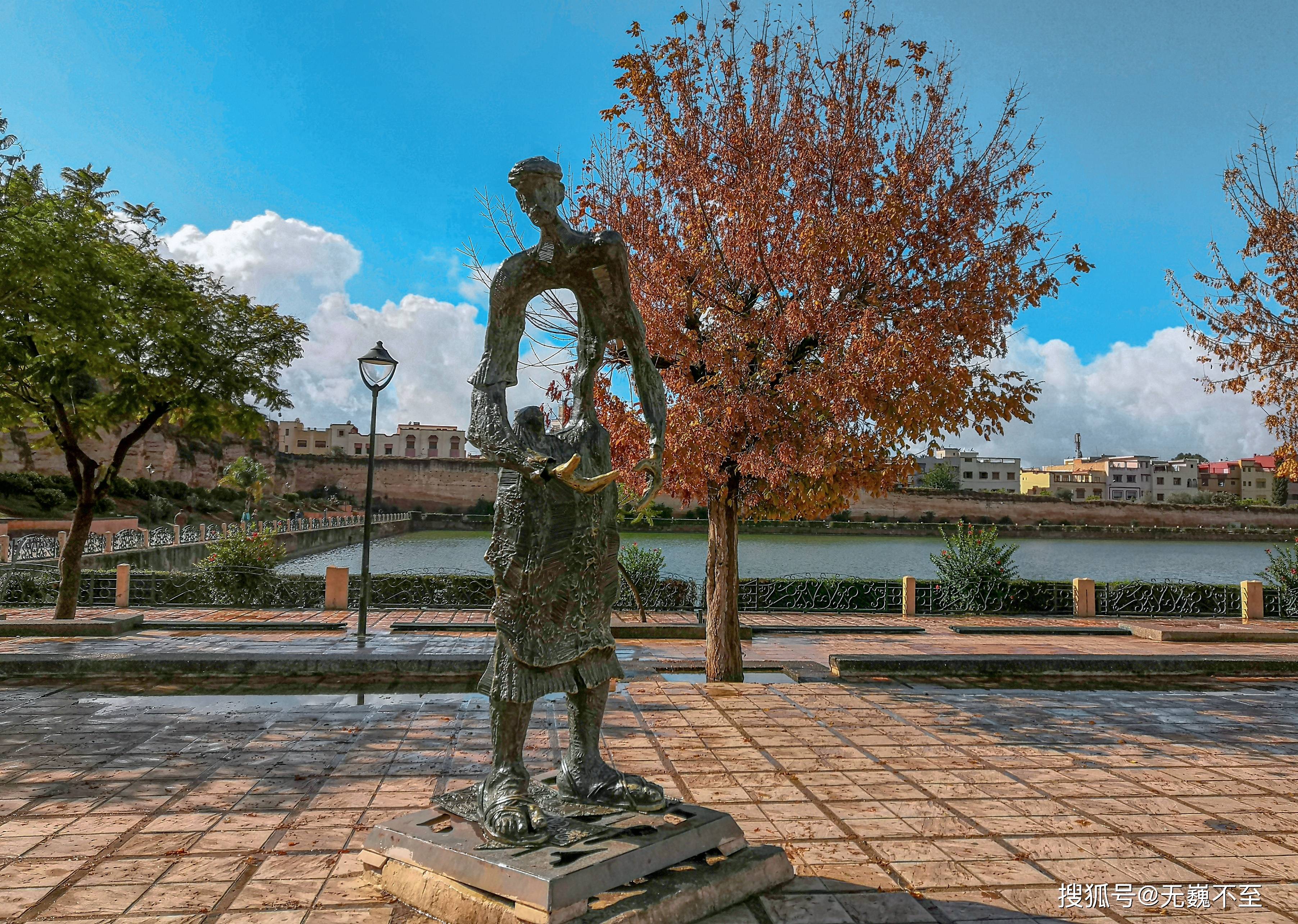 湖畔种有大树、鲜花和草坪,一尊青铜雕像立在路旁,没有任何介绍说明,但其体貌特征与书中伊斯梅尔的描述极为相似:身材瘦削植长,浅栗色的头发,长圆形的脸,蓄着八字胡须,皮肤呈深褐色,两眼炯炯有神,声音洪亮。如果猜得没错,这尊胸怀摩洛哥版图的雕塑应该就是伊斯梅尔本尊吧!