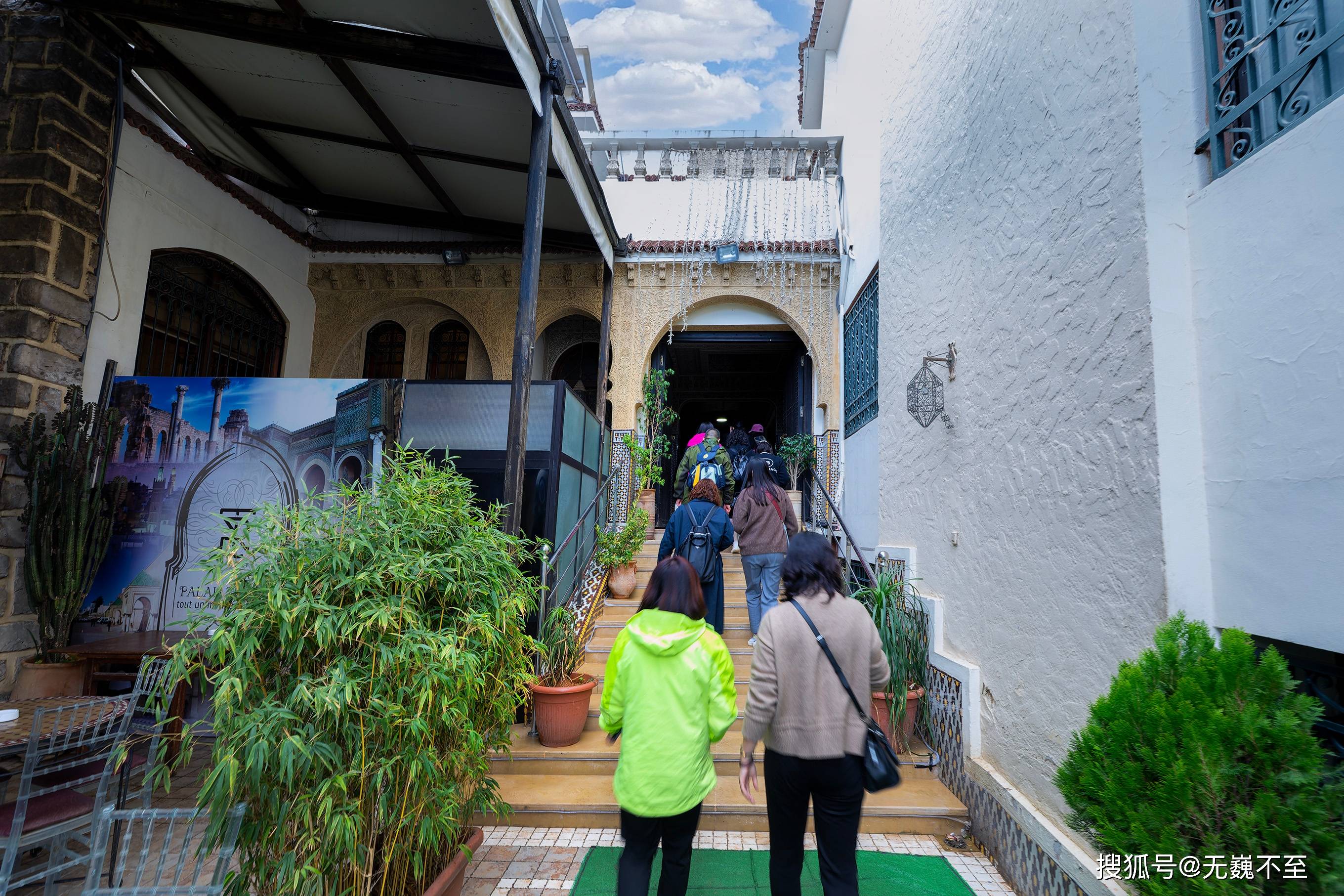 梅克内斯古城内根本就无大巴容身之处,所以午餐被领队安排在新城郊区一家装饰典雅清新的摩洛哥餐厅就餐。