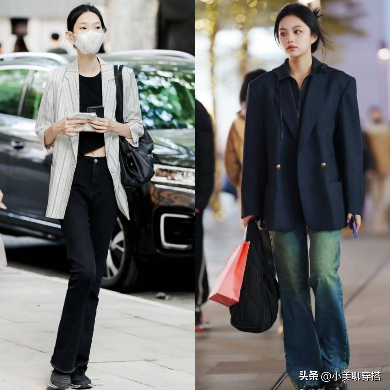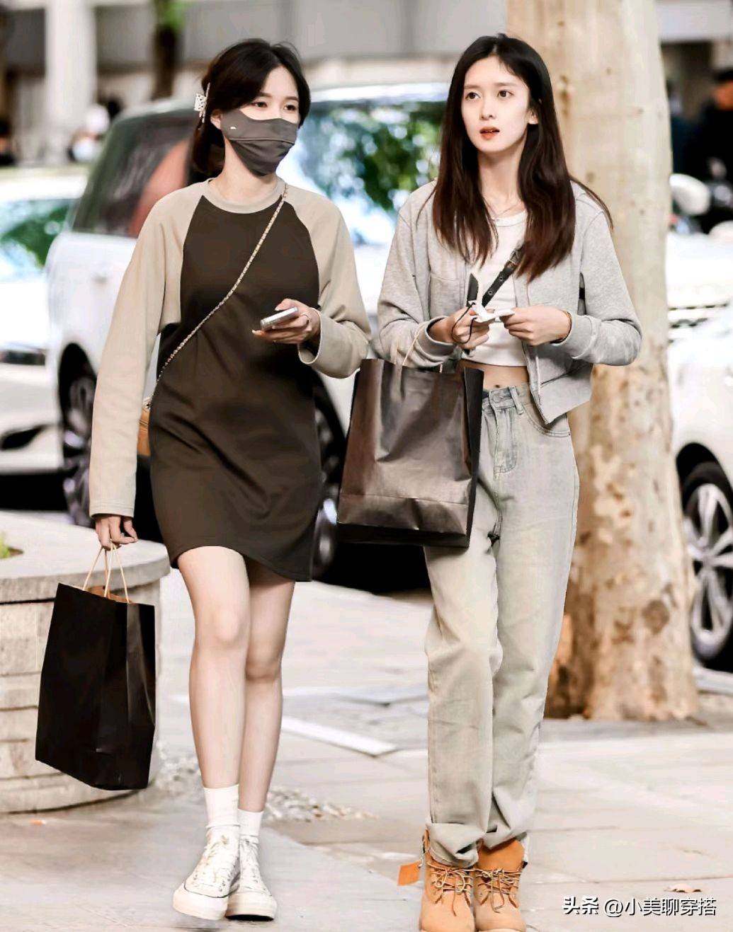闺蜜们的穿搭更为抢眼,可以同风格,也可以混搭,但是都那么养眼,成为街上最靓丽的风景。