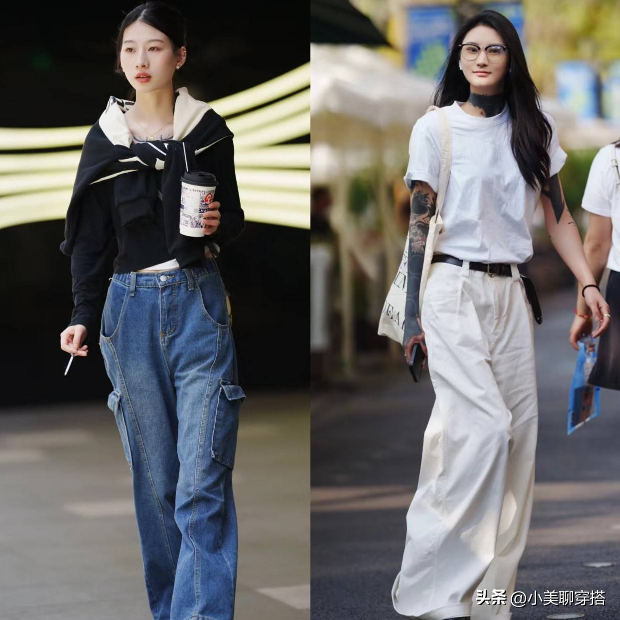 早秋的季节,你会发现成都女生超爱穿牛仔阔腿裤。