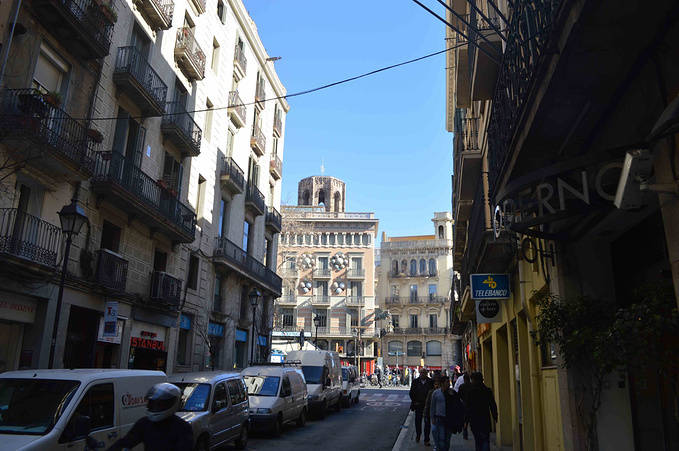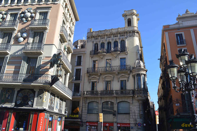 公寓就在著名的 Rambla 兰布拉大街 Liceu 剧院的后面,是巴塞老城“哥特区”。放下行李上街吃饭,9 - 10点钟是西班牙人的晚饭时间。吃完饭就在 Lambla 兰布拉大街上闲逛。