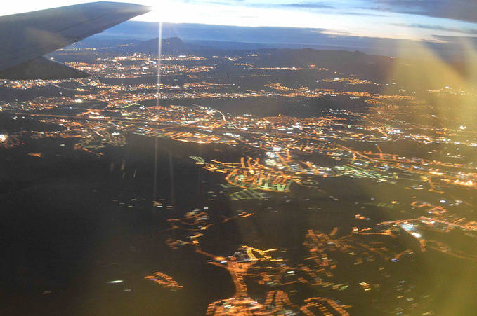 飞机穿越法国上空,在太阳下山时我看到了巴塞罗那的城市灯火。巴塞罗那时间要比伦敦早一个小时,6点的飞机在降临巴塞罗那时就变成了7点。过海关很顺利,海关官员看了下我的护照,然后说:“哦,达利。”