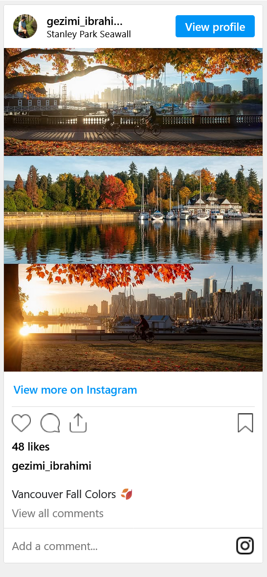 斯坦利公园的海滨步道(Seawall) 更是成为一幅绚丽多彩的秋日画卷: