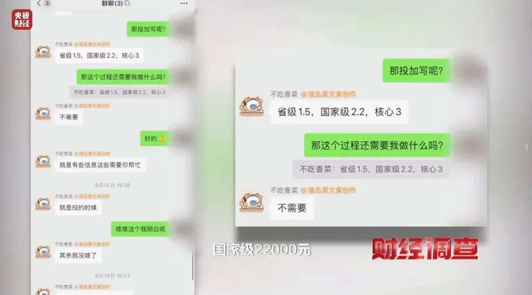 近期《财经调查》栏目接到群众反映,有个别企业,公开大肆招聘所谓“撰稿”人员,为有需求的群体有偿代写。只要付费,就能批量生产假文章、假论文,甚至形成了一条灰色生意链条。