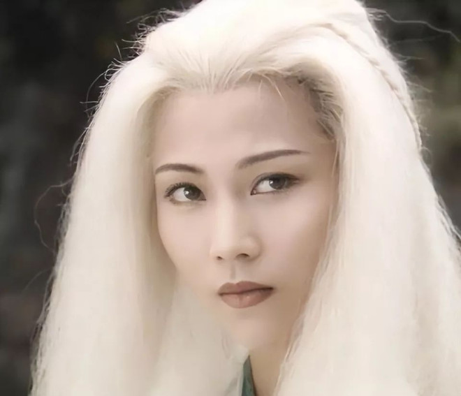 在剧情里她饰演的练霓裳后期会因为情伤而变成满头白发的样子,