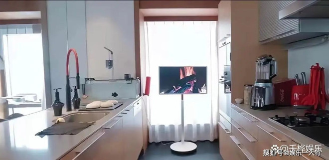 厨房那个能推来推去的“闺蜜机”可能是最常亮的屏幕,阿娇一边看着它做饭,一边等着外卖送达。 中岛台上摆着高级厨具,但切菜板上连刀痕都少见。 唯一有生活痕迹的是那台破壁机,女明星和普通女人在这件事上达成共识:一边胡吃海喝,一边疯狂减肥。