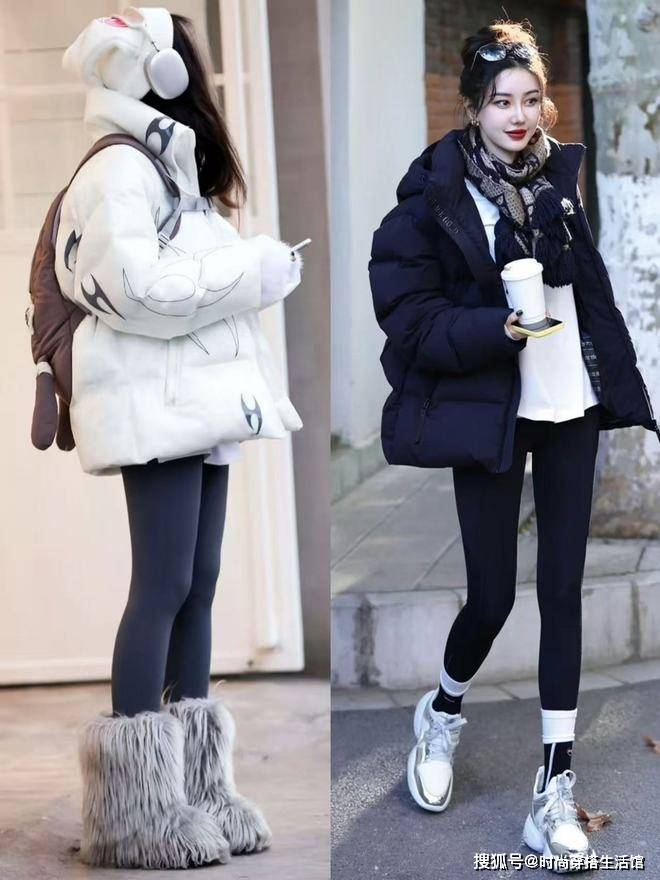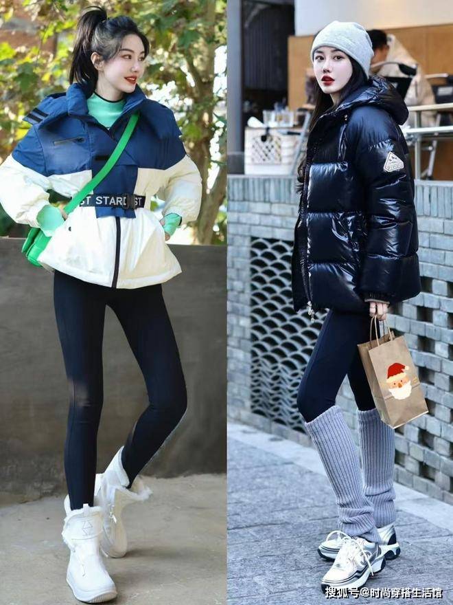 羽绒服的外观是蓬松的,下半身如果再穿上肥胖的裤子,整个人很容易呈现出“矮肥圆”的状态,用鲨鱼裤就能轻松显瘦!