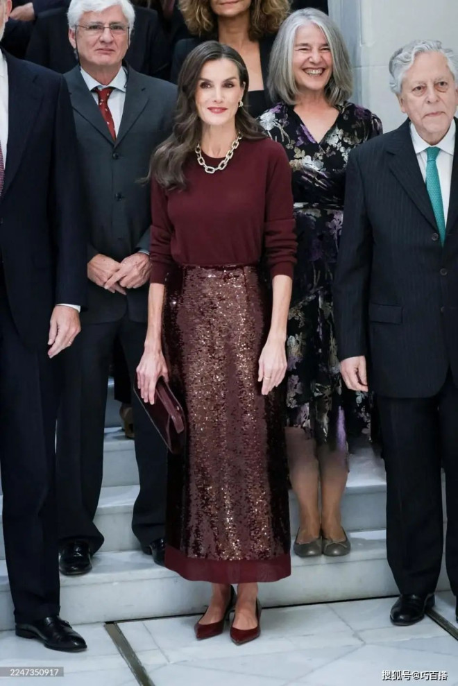 平时镜头下的莱蒂齐亚王后给人一种丰盈美,但现在的她看上去略显干瘦,不知道是角度问题还是她确实到年龄了。