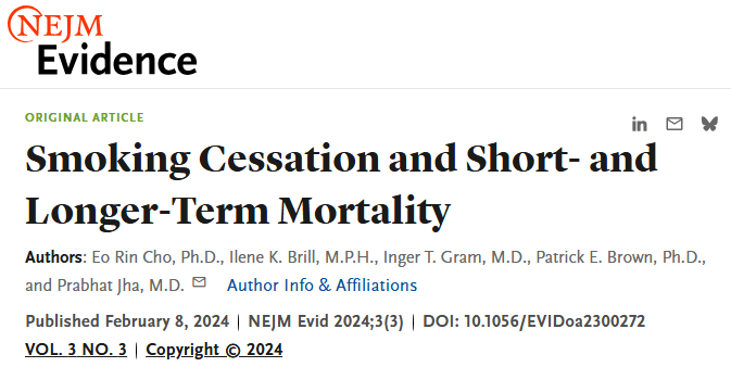 此前权威期刊NEJM就曾发布过相关研究,展现了戒烟带来的好处,其中数据显示,40岁之前能成功戒烟并保持3年不复吸,无论男女死亡风险都将降低90%以上。