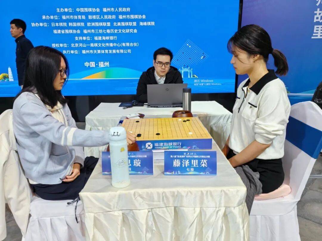 李思璇六段执白对第6届吴清源杯亚军藤泽里菜七段,中盘时左边盘黑棋悉数被吃,白棋胜率升至90%以上。实战里菜在左边盘“搅肉”,李思璇只要护住大空即赢定,但越是求稳越是稳不住,李思璇稍显松懈的一着补致胜率暴跌50个百分点。其后里菜愈战愈勇,在白棋大空里弈出“共活”,白空尽消,败局遂定。
