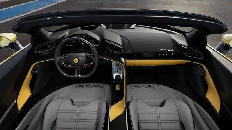 法拉利849 Testarossa Spider的可折叠式硬顶敞篷,在车速不超过45公里/小时的情况下,仅需14秒即可完成开启或闭合操作。座椅后方还配备了创新的挡风系统,能够有效减少车内紊流。