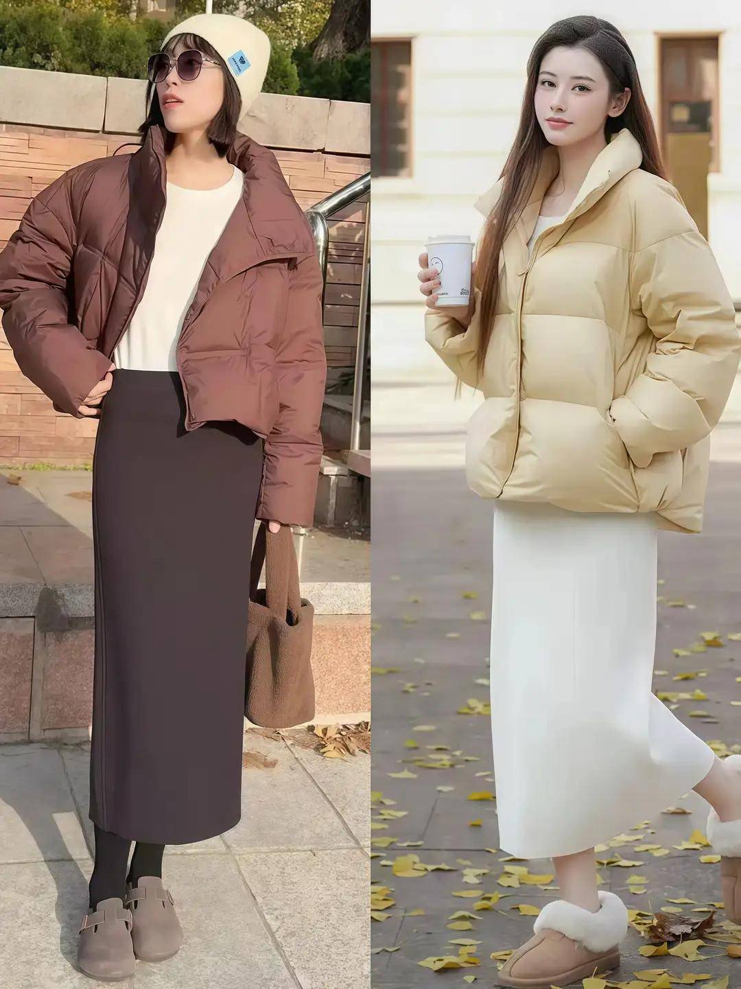 气温骤降,我们穿羽绒服的时候,真的,别再搭配打底裤了,可以换成裙子,或者是直筒裤,无痕裤 ,轻松兼顾保暖与时尚,告别臃肿显胖,穿出高级感冬日高级感。