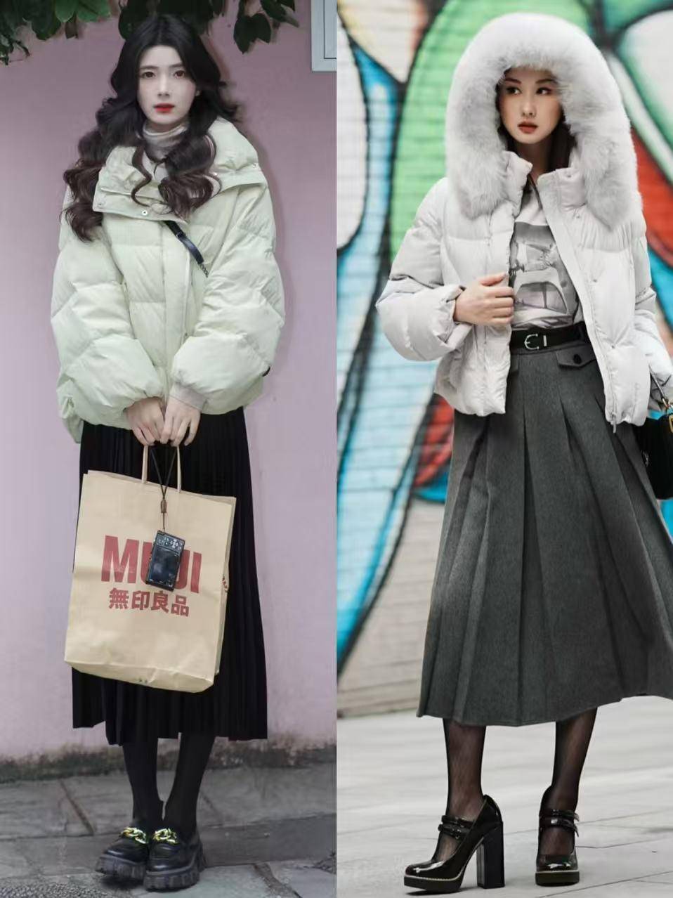 “羽绒服”新穿法火了 搭配裙子、直筒裤