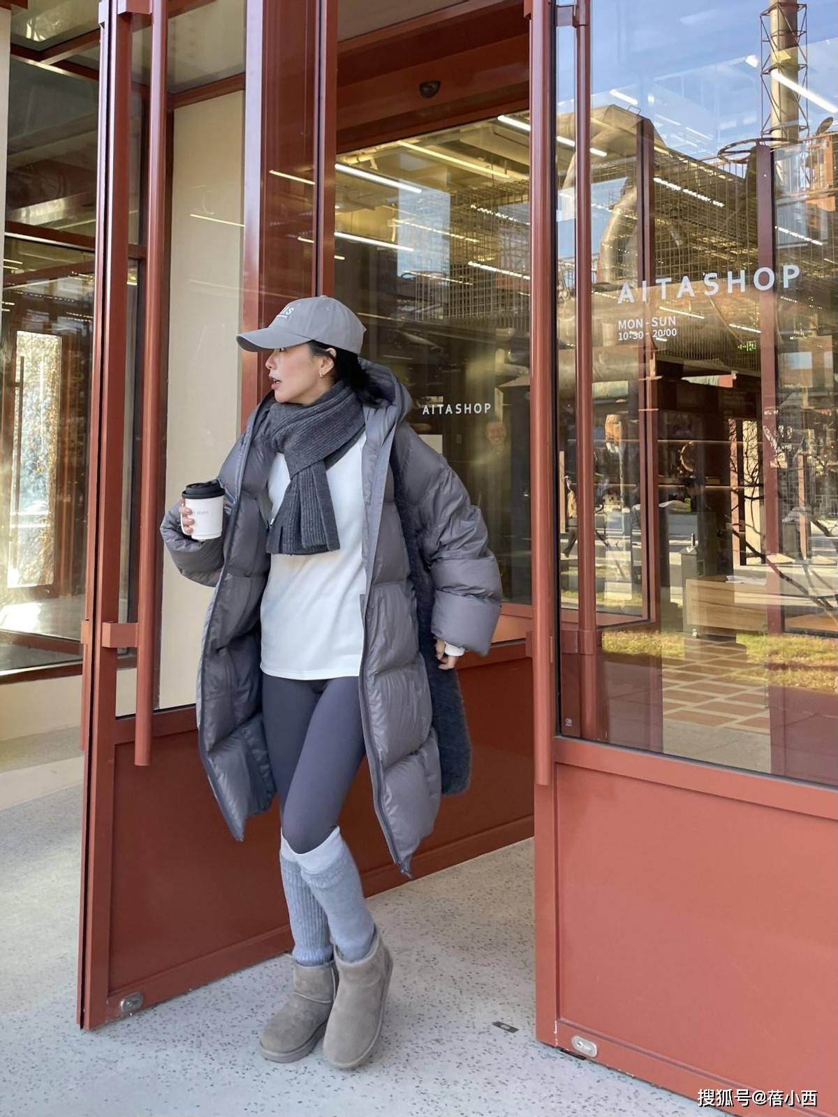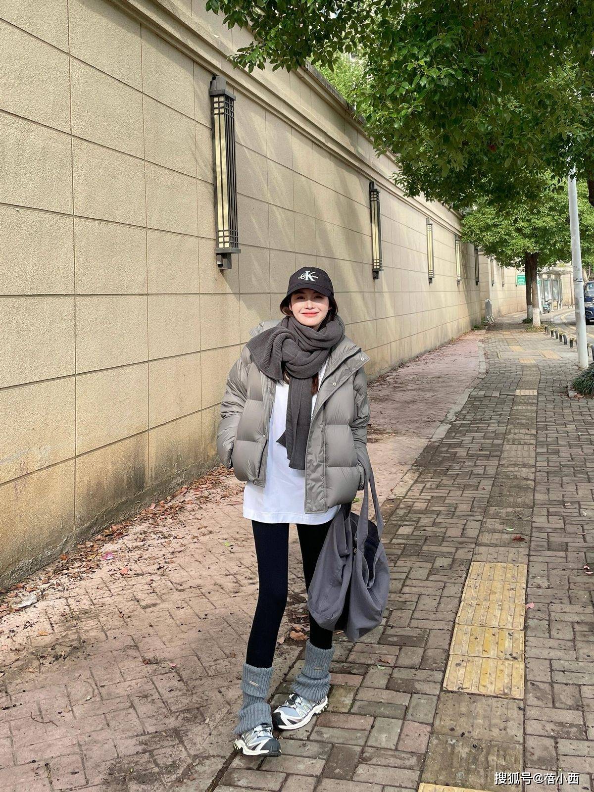 灰色和白色的组合,能瞬间打破冬日的沉闷,看着就干净又温柔。中长款灰色羽绒服里搭一件米白t恤,再系上围巾,戴一顶棒球帽,整套搭配清清爽爽,黄皮穿也能提亮气色,不管是逛超市还是约朋友喝咖啡,都透着随性的美。