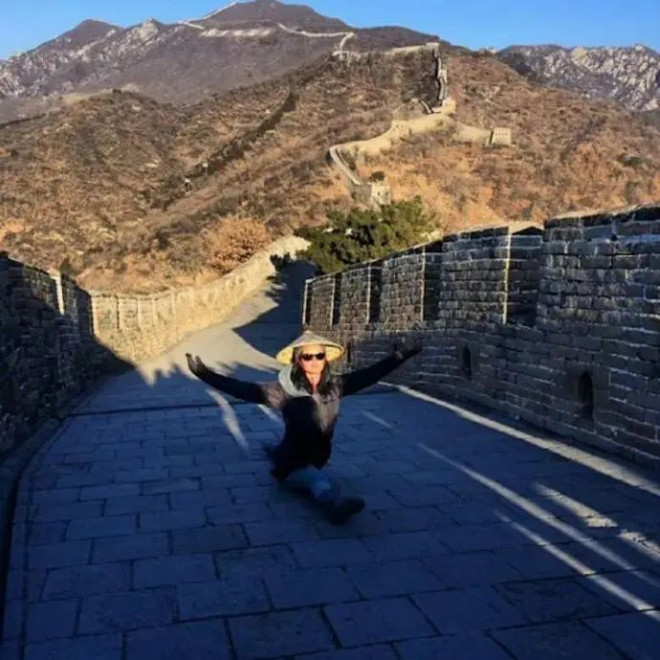 登个长城都要表演个一字马劈叉,试问还有哪个天后能做到。
