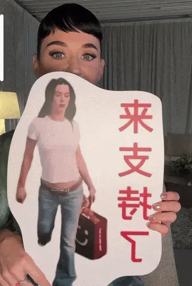 她接过labubu定睛一看,发现上面竟然是她那张全球闻名的表情包。