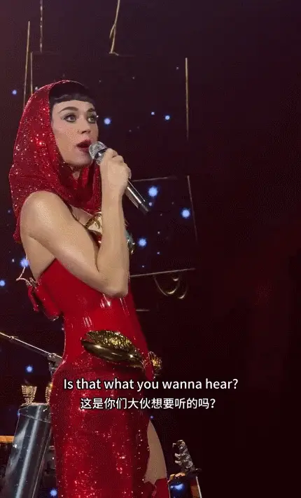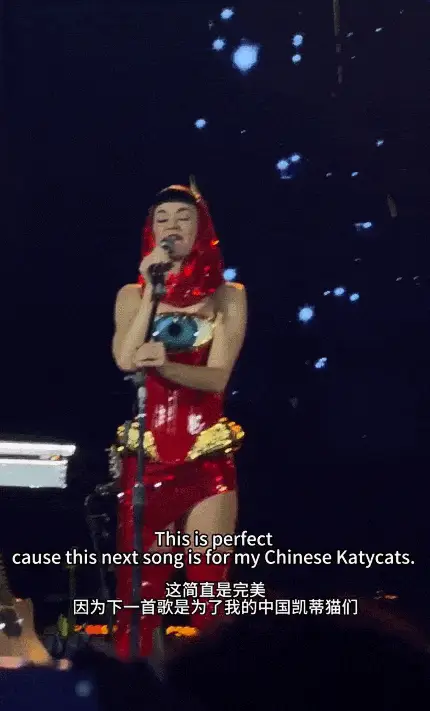 “nextsong is for my chinese katycats, cos i love you unconditonally.”(下一首歌是唱给我的中国粉丝的,因为我无条件地爱你们)