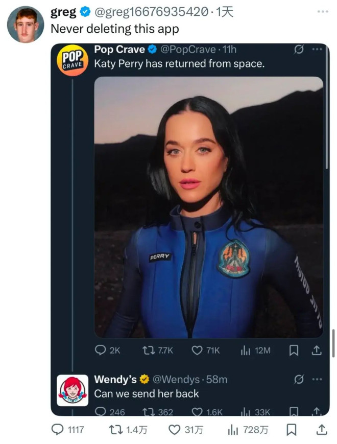 今年她不但和开花哥奥兰多·布鲁姆正式分手,结束了9年的感情,还因为上太空事件被全美网友嘲到差点退网。