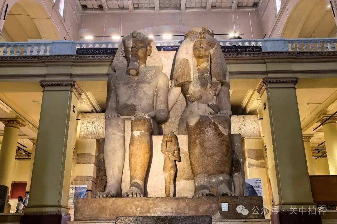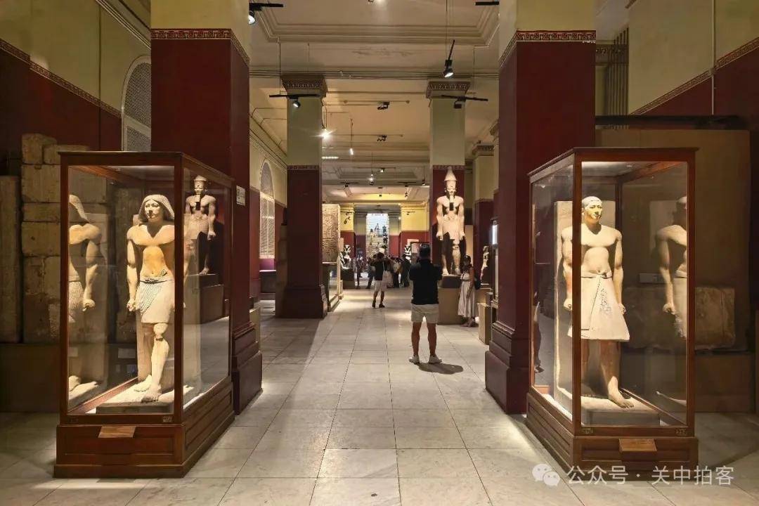 走进博物馆大门,置身于穹顶之下,好像一个十字路口,三面是通往不同方向的长廊。北侧的长廊被称为“英雄大厅”,两侧摆放着高大的人物石雕,均为古埃及著名的法老形象。