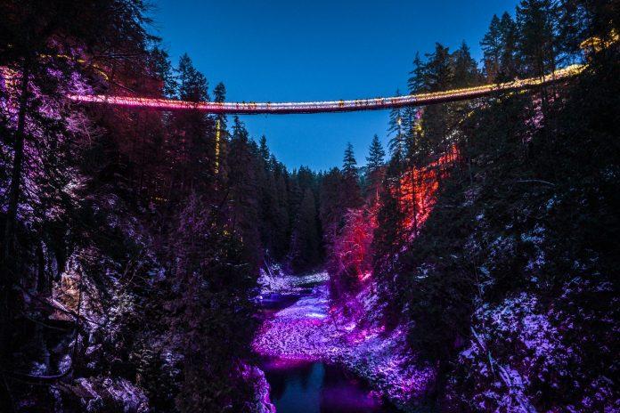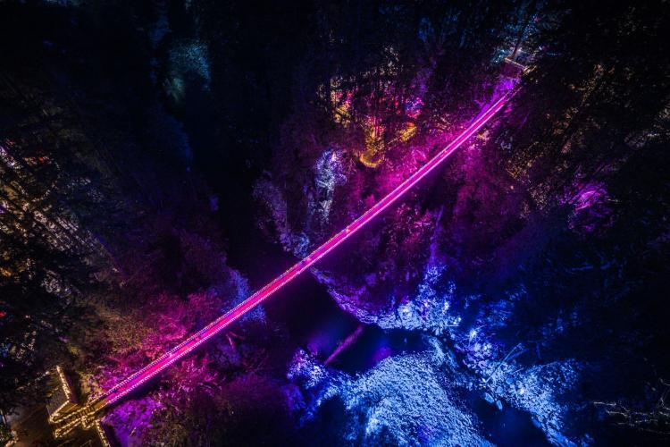 位于北温的卡普兰奴吊桥公园(Capilano Suspension Bridge Park)平日即为森林浴赏景好去处,前一档以圣诞新年为主题的“峡谷灯光秀”即将于1月18日结束,但很快将于1月30日迎来浪漫的“爱之光”(Love Lights)。