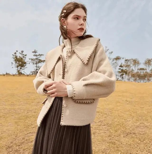 领型革命:用彼得潘领替代传统圆领,V型开领延伸颈部线条,立领设计增强利落感