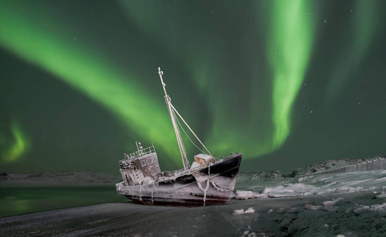 捷里别尔卡:北冰洋尽头的渔业小镇,沉船公墓、雪原、海岸线上演末日美学,是极光摄影和风光大片的取景地。