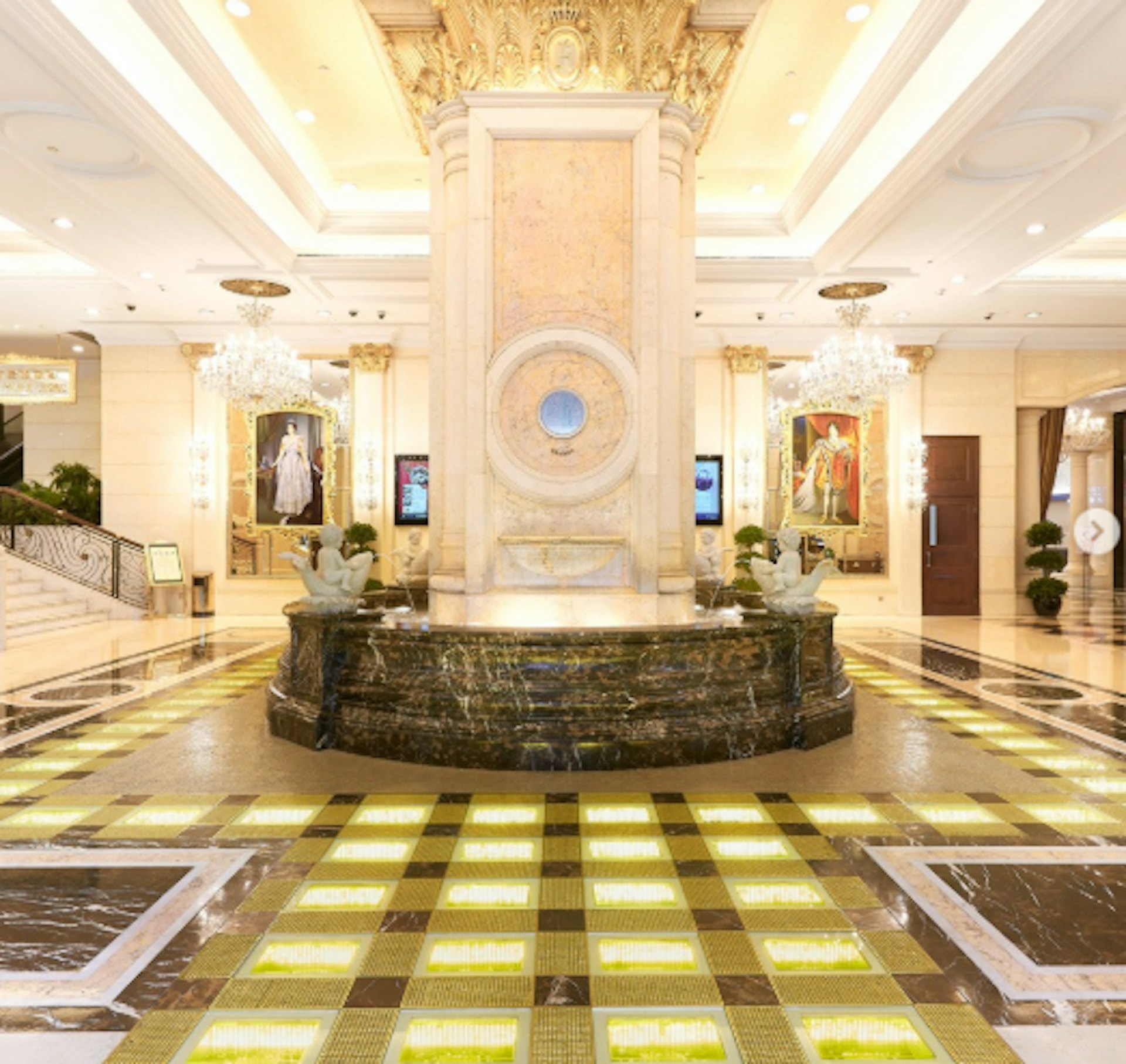 据英皇集团官网资料显示,英皇娱乐酒店于2006年开业,坐落于澳门市中心,酒店以宫殿为主题,正门两旁以仿古马车点缀,金色车身衬托精致雕刻工艺,尽显十八世纪英伦艺术典范。酒店共提供客房超过300间,分为英皇套房、皇后套房、皇室套房和行政套房等。