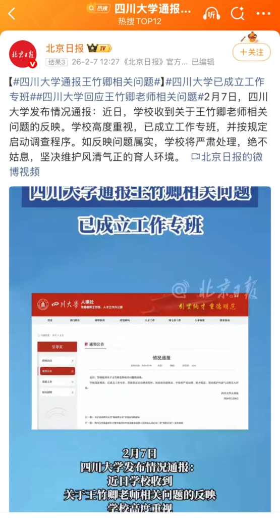 目前四川大学已经开始调查了。