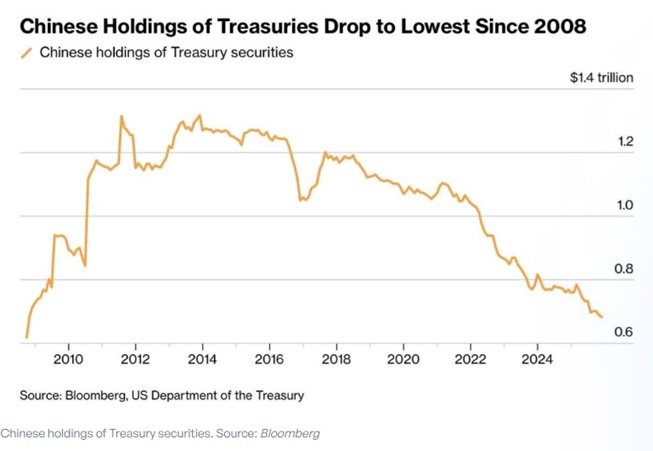 具体来看,根据美国财政部数据,中国的美债持有量已降至6826亿美元,较2013年1.32万亿美元的峰值大幅回落。