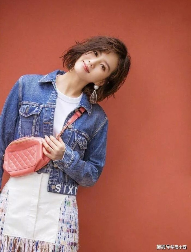 最让人惊艳的,还是她的短发造型,层次分明的波波头长度恰好落在耳下,发尾带着自然的蓬松弧度,修饰了下颌线条,也让脸部轮廓更显精致。利落的短发不仅弱化了她以往温婉的气质,更添了几分飒爽感,与牛仔外套的率性完美呼应。