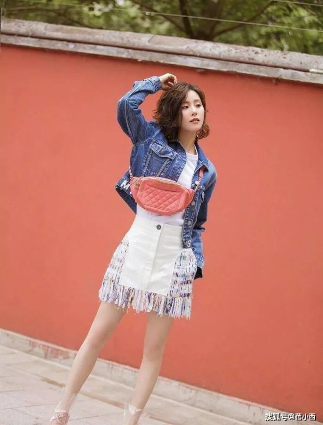 白色短裙的搭配充满少女感,裙身主体采用简约的白色皮质面料,自带细腻光泽感,而裙摆处拼接的彩色流苏边则瞬间注入了活力气息,细碎的流苏随着动作轻轻晃动,让静态的穿搭多了几分灵动俏皮,短裙的长度恰好露出纤细的小腿,在视觉上拉长了腿部比例,配合刘诗诗笔直的腿型,更显轻盈高挑。