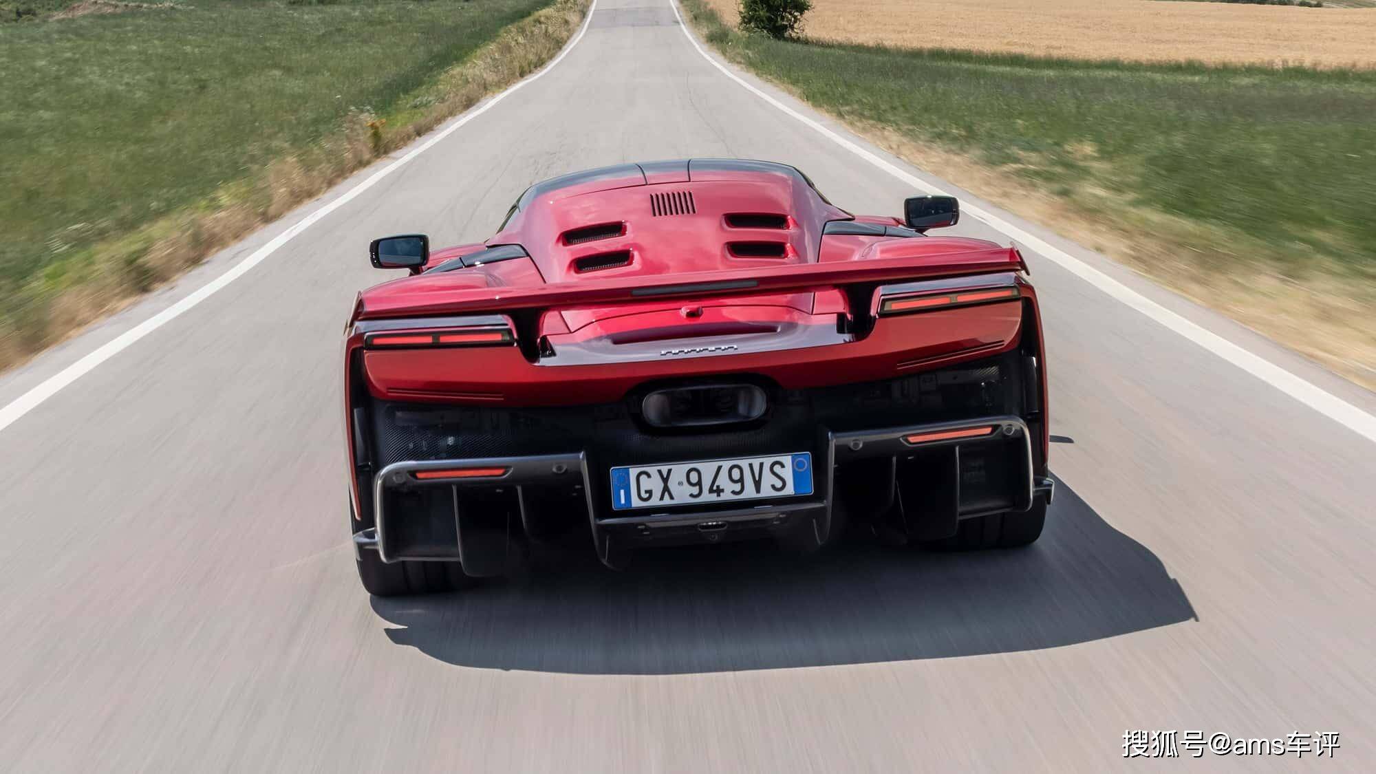 这块尾翼由四台电机控制高度与角度:直线时保持平直、急刹时抬起、最大角度11度,由此产生极强下压力:在250公里/小时的车速下,可达1050千克——几乎是LaFerrari的两倍。