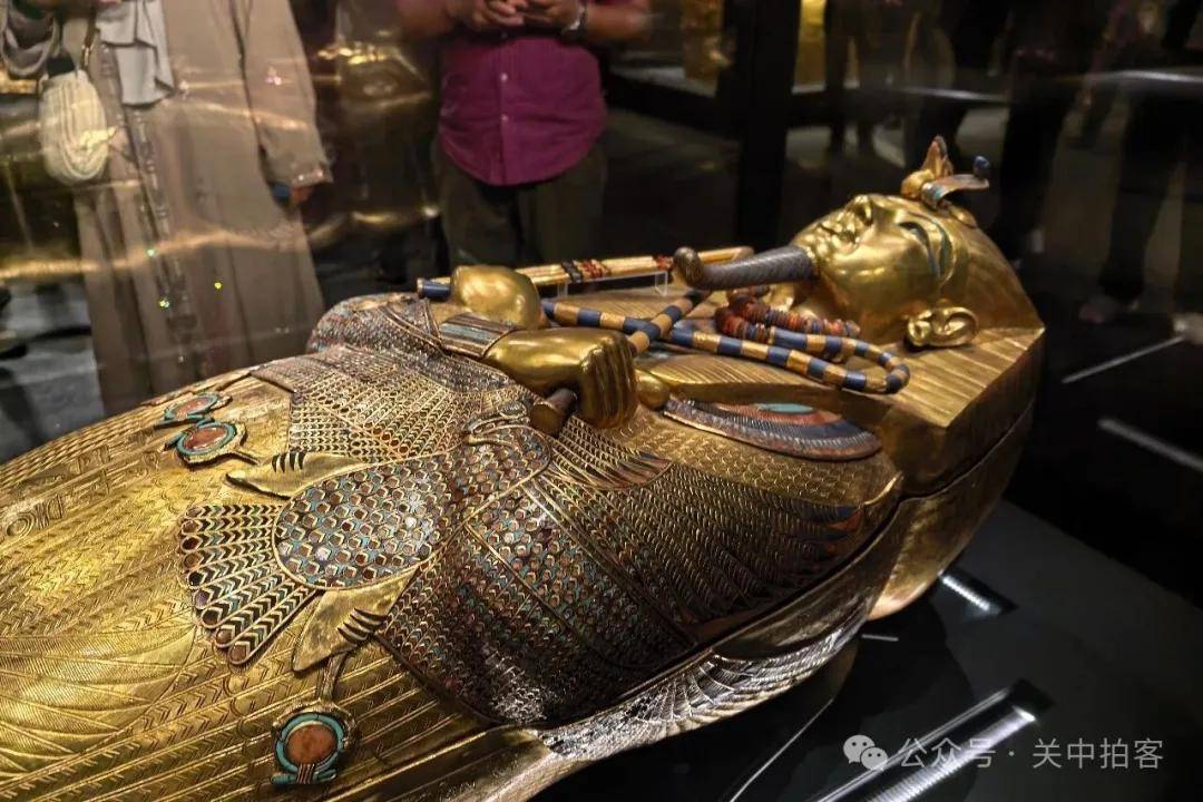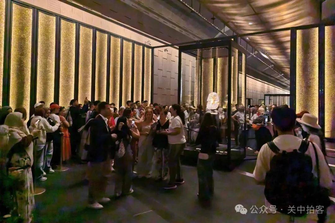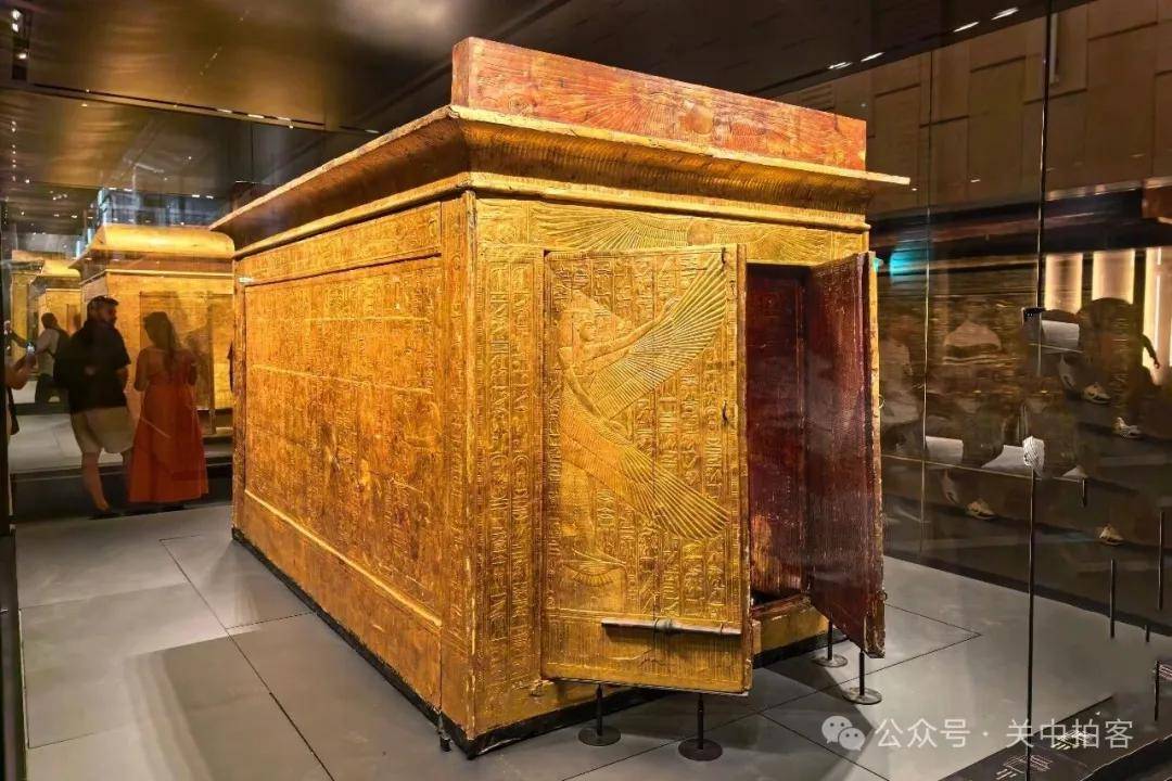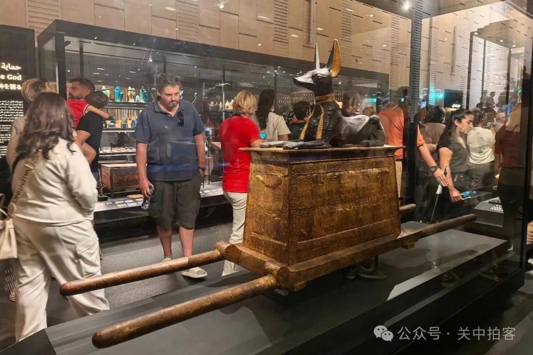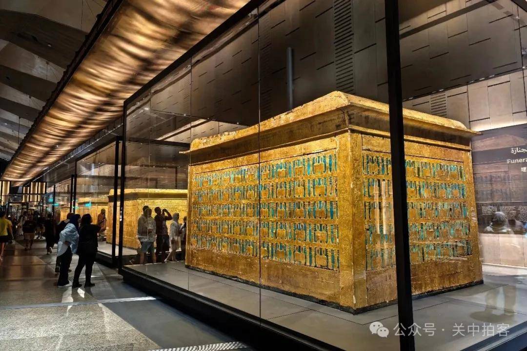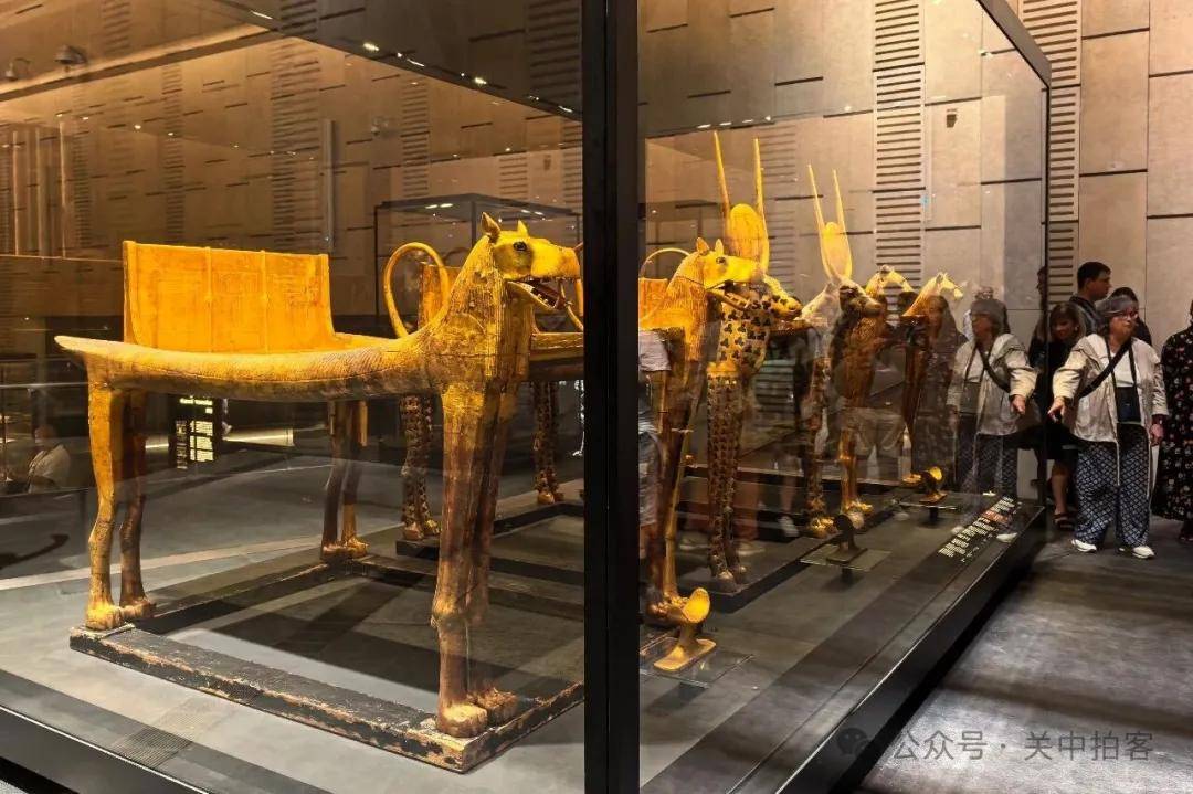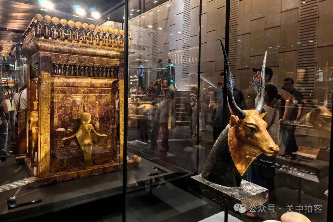 2025年11月22日下午,参观完大埃及博物馆主展厅,我来到对面的图坦卡蒙展厅。这里被大量游客挤得水泄不通,金碧辉煌,热闹非凡。