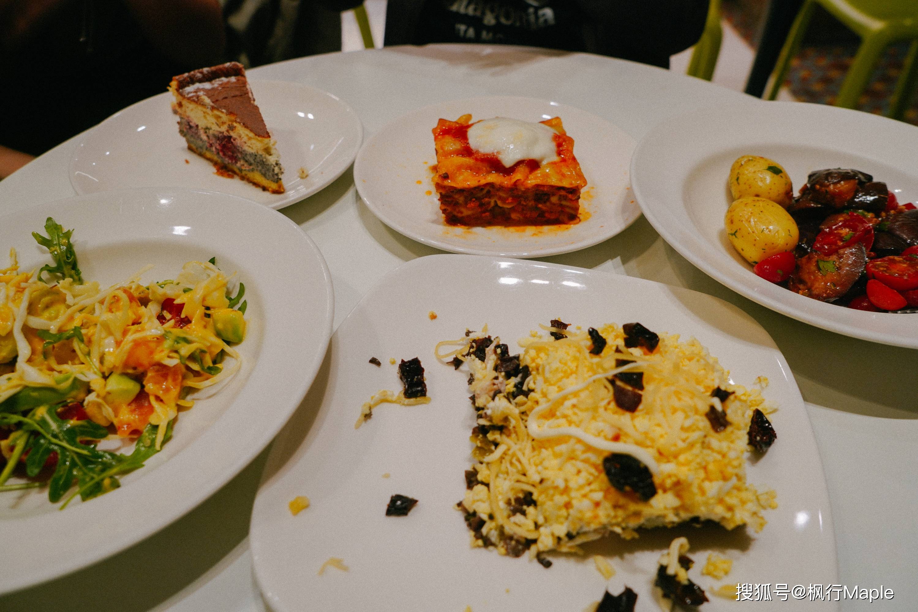 连说带比划的点好了一餐,意面\炸鱼、丰富的沙拉和酸奶蛋糕,没有一个踩雷。而且味道清淡,就连甜品也可圈可点。